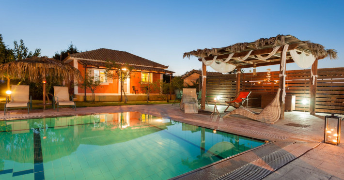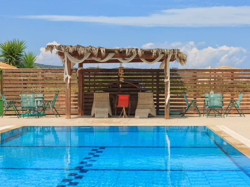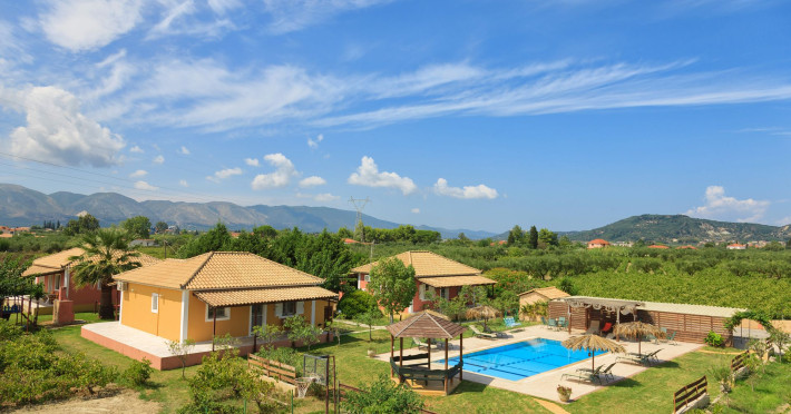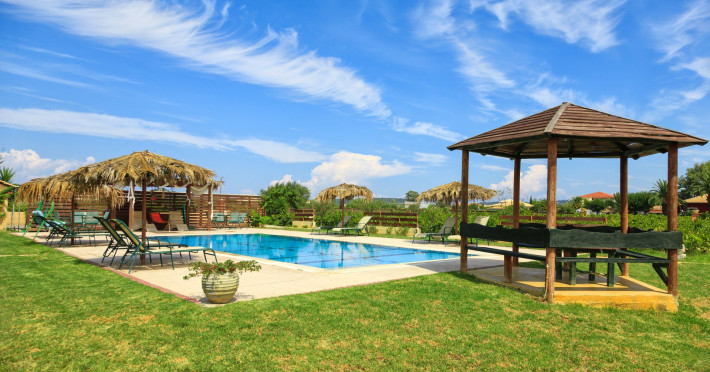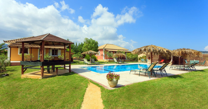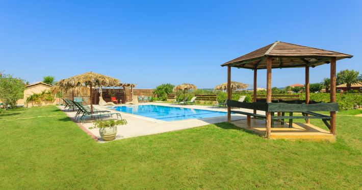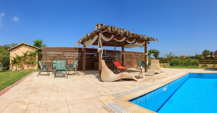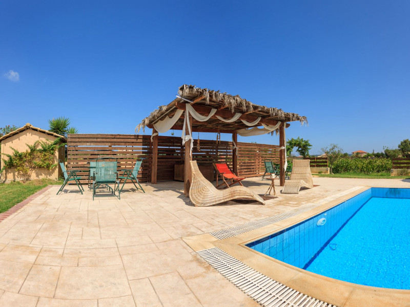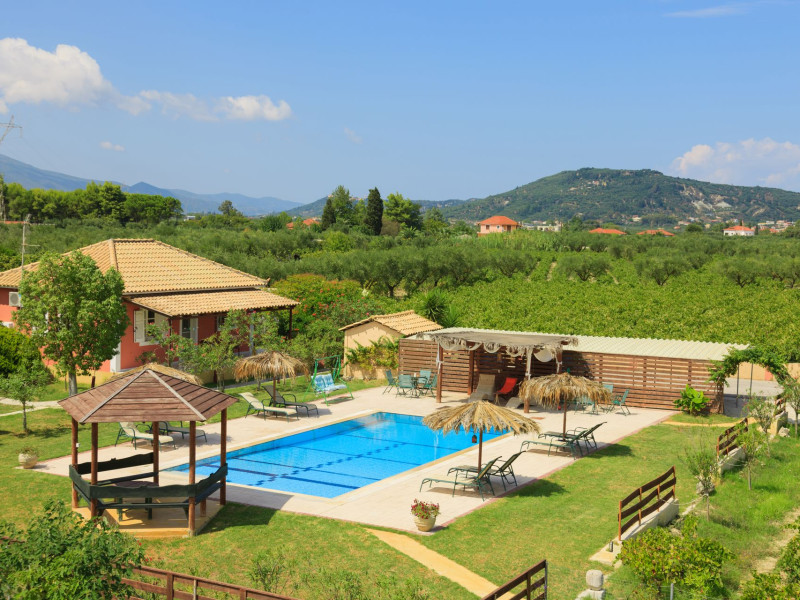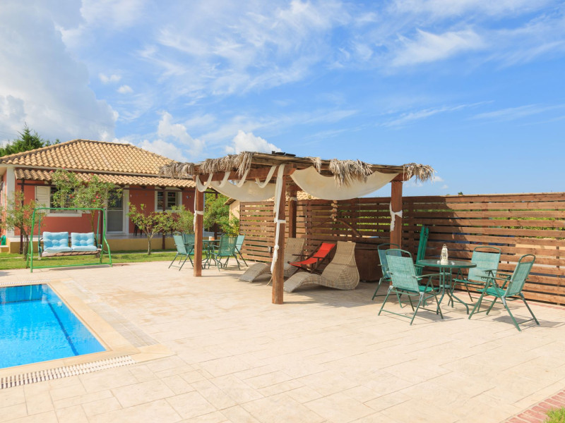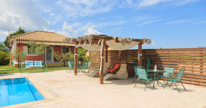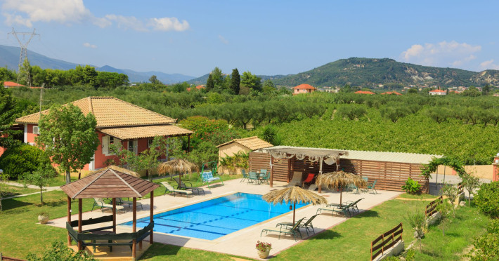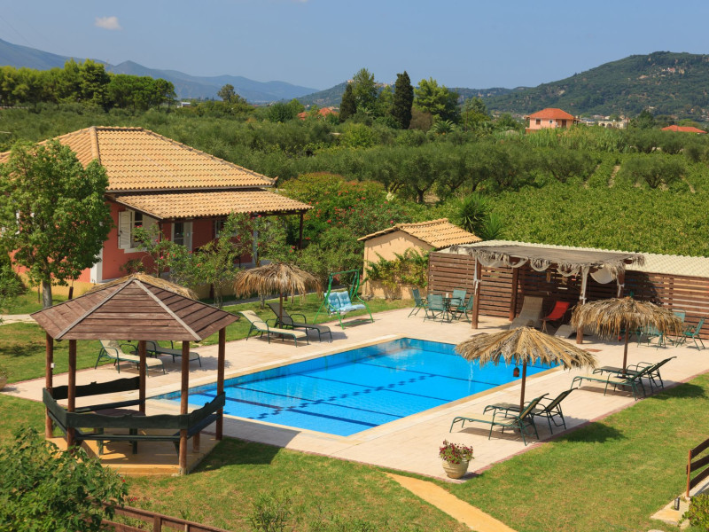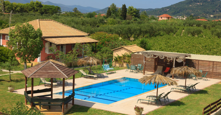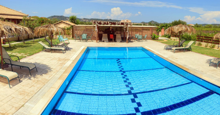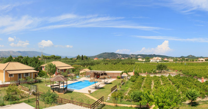 Augoustinos Villas is a complex of four villas, situated in a calm, quiet and green area in the village Sarakinado Zante. The location is ideal for relaxing holidays, as the houses are located far from the city center and are surrounded by lush landscape with vineyards. From here, you can easily reach all the beaches of the island in about 10-20 minutes.Sarakinado village is only 3km far from the tourist resort of Tsilivi ,where you will enjoy the stunning sandy beach, ideal for children due to its shallow, warm and crystal clear waters, as well as dozens of restaurants, tavernas, bars and a variety of shops for your shopping.The friendly welcome of the owners will guarantee you a fabulous stay, while the island -called the ‘island of music and love’- will enchant you with its exotic golden beaches, crystal clear waters, the brilliant history and the hospitable residents.Augustinos Villas are fully equipped, there is a swimming pool, a large garden and bicycles for children .They can accommodate 4-6 people. The property owners have formed and decorated the whole place with care and warmth, giving priority to the needs of visitors, so that they feel at home.