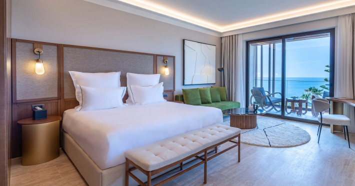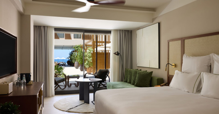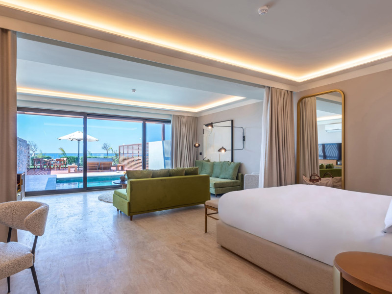 The hotel's spacious rooms and suites are designed in soothing earthy tones inspired by Crete's natural palette. They exude relaxed sophistication. Terracotta accents, warm wood textures and contemporary touches create an atmosphere of casual elegance. Some accommodations feature private or plunge pools for the ultimate indulgence. Aulūs Chania is the epitome of worry-free, inclusive luxury. Guests are invited to savour life at its most effortless and enjoy vibrant culinary experiences and soulful service.