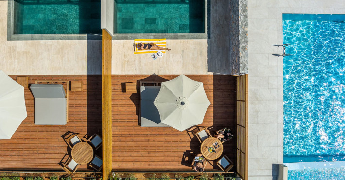 Guests can spend days drifting between three shimmering pools and a floating sea deck or unwind on the uncrowded beach, explore the charm of Chania's historic streets, then return to recharge at the signature Soma Spa, where wellness rituals and a fully equipped gym await.