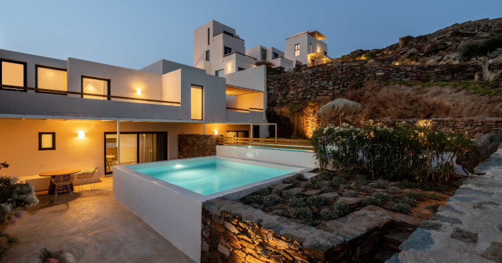 Aura Villas Tinos is situated in a stunning sea-view location, within easy reach of Tinos Chora and the port and only steps from the gleaming waters of Vourni beach.