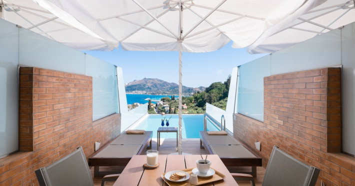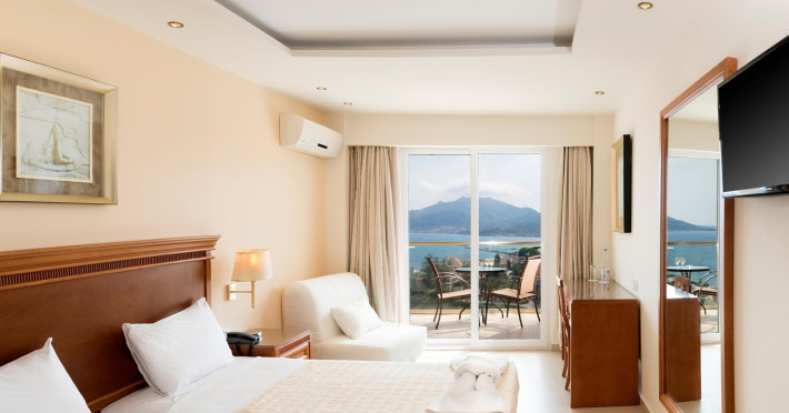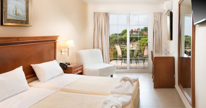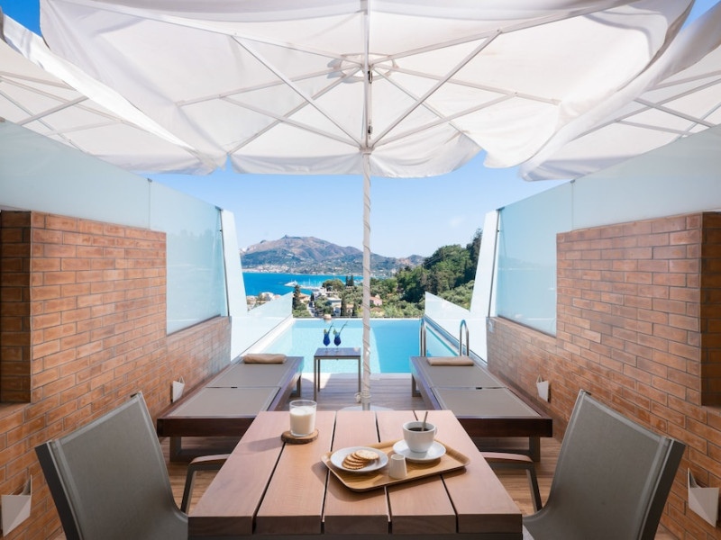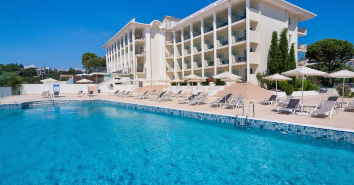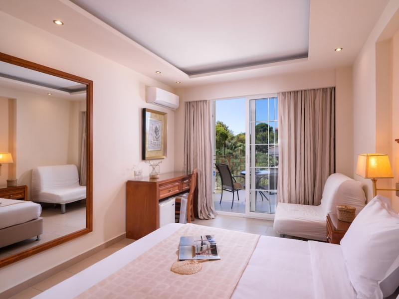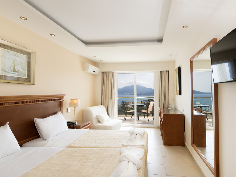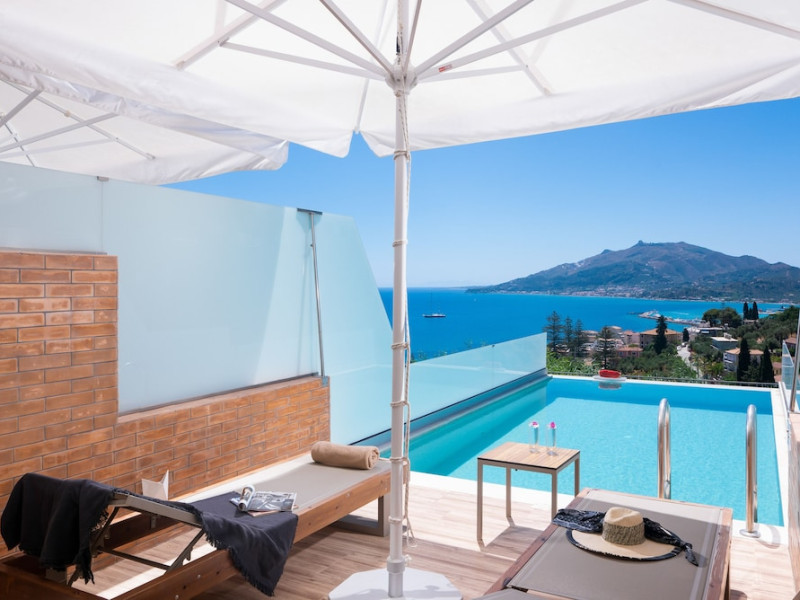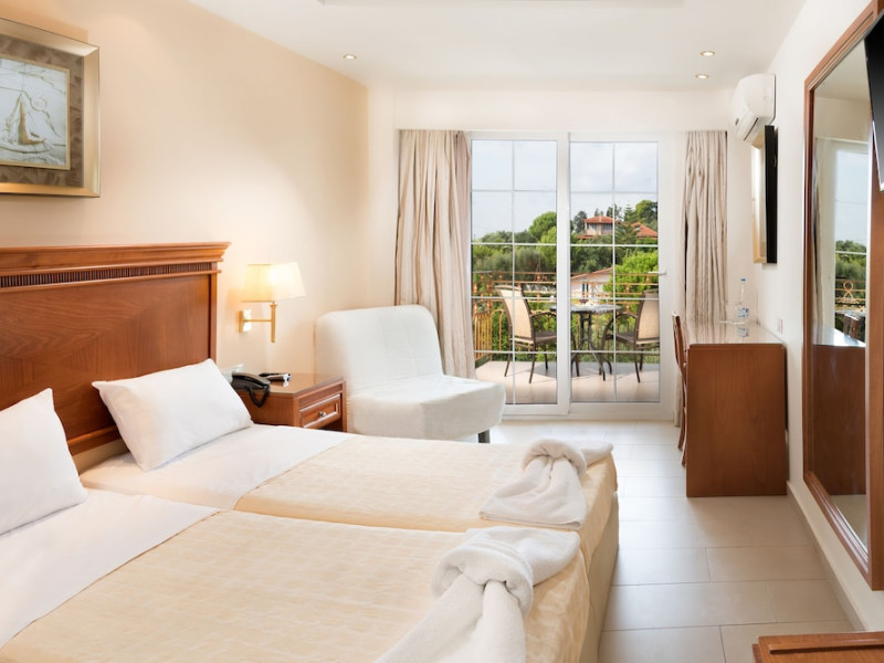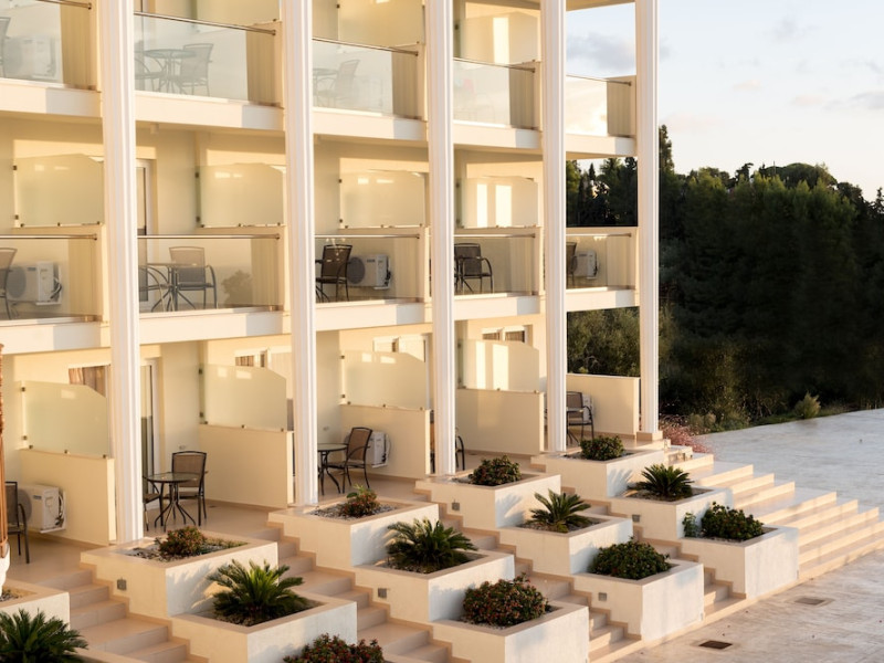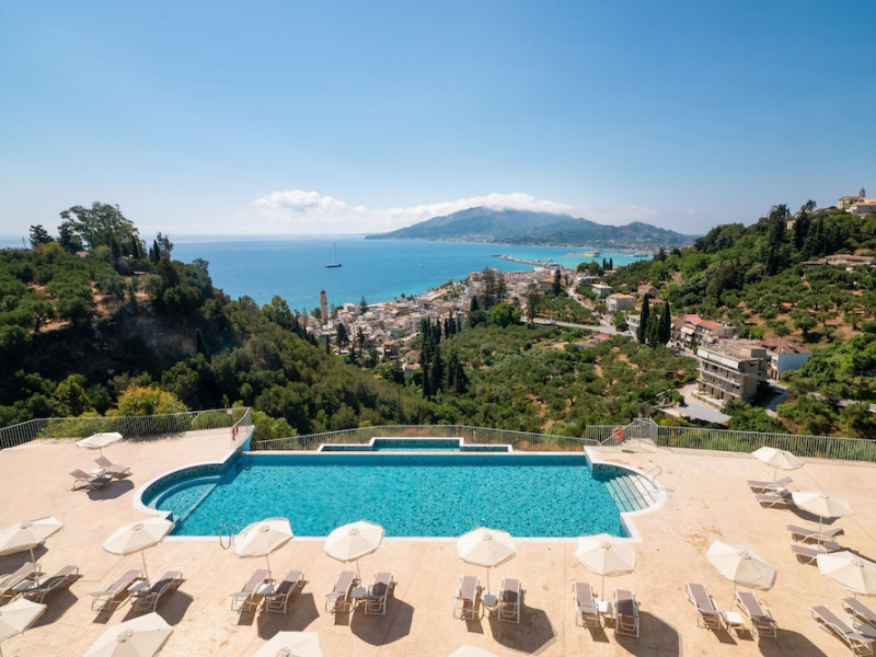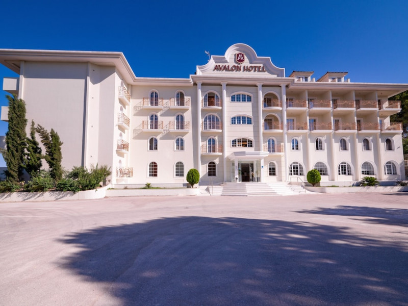 Located on the hillside of Bochali, Avalon Palace Hotel offers views of the Ionian Sea. It features an outdoor pool, a restaurant, and a bar. The air-conditioned rooms have a balcony with sea, mountain, and garden views, free WiFi, a flat-screen TV with satellite channels, and a fridge. Guests can relax in the garden or on the sun terrace. Free sun loungers and umbrellas are available by the pool. A complimentary shuttle operates within 3.3 kilometers. Free self-parking is available onsite. The hotel is located approximately 1 km from the nearest beach, Zakynthos Port, and the town's shopping center and bars. The Zakynthos airport is 7 km away. The hotel is closed between October 16 and April 30. The Avalon Palace Hotel is a hotel.