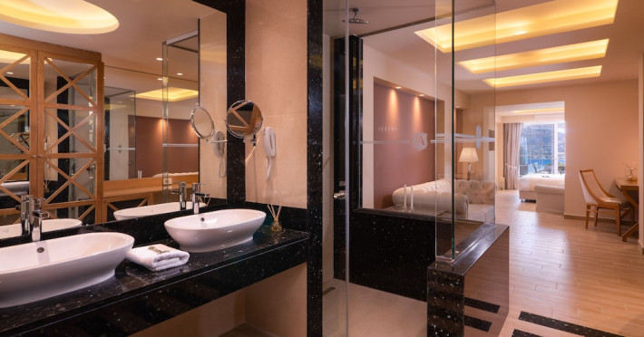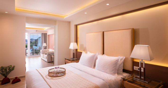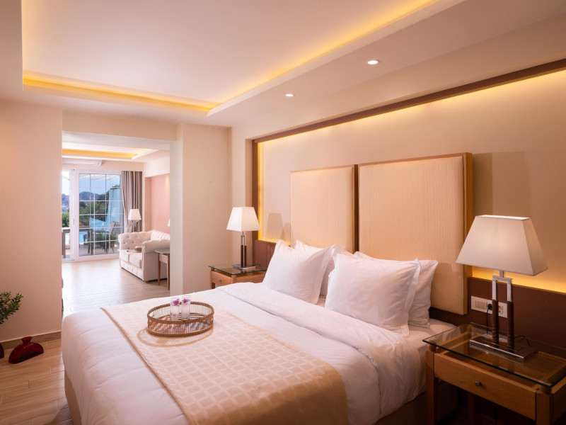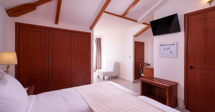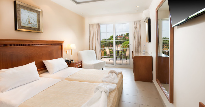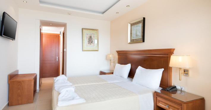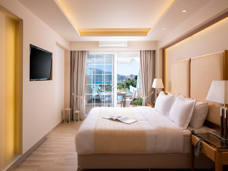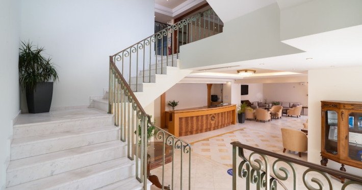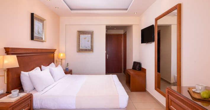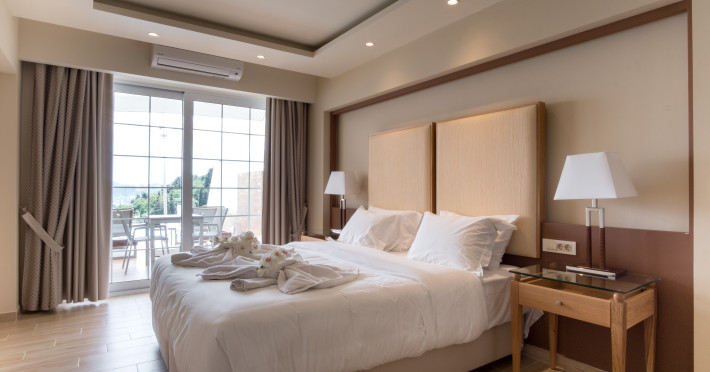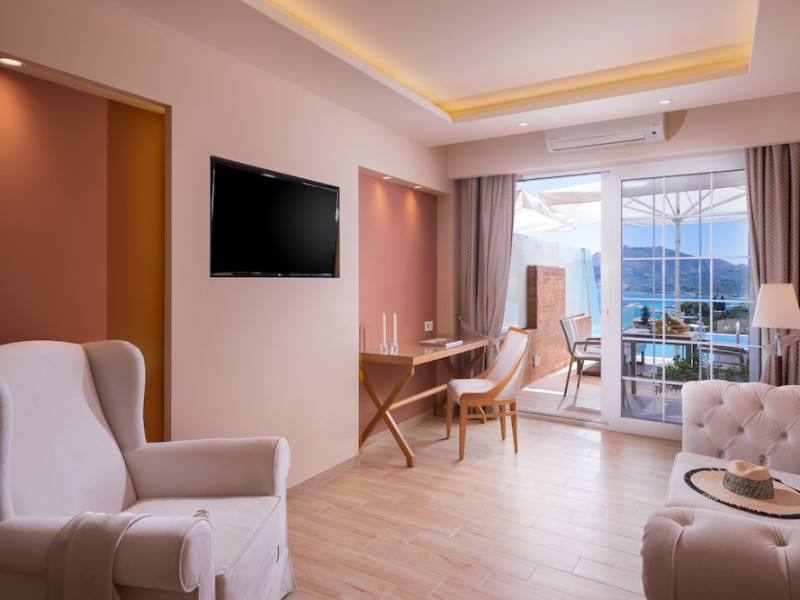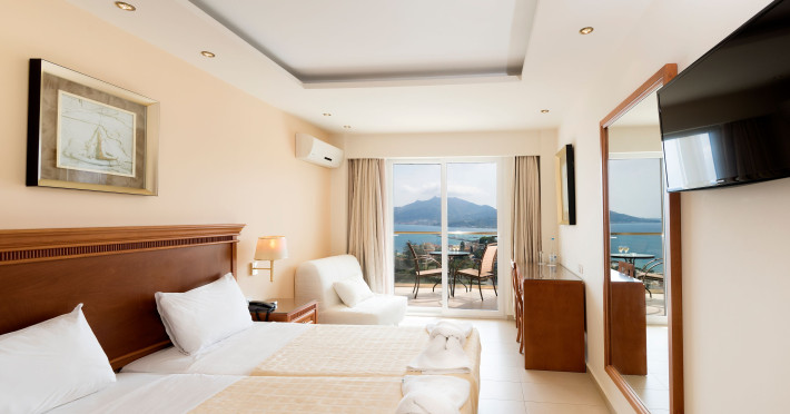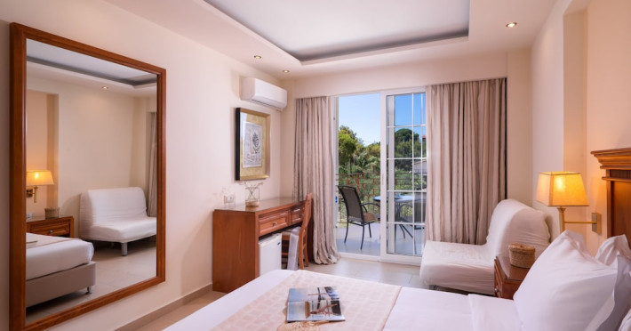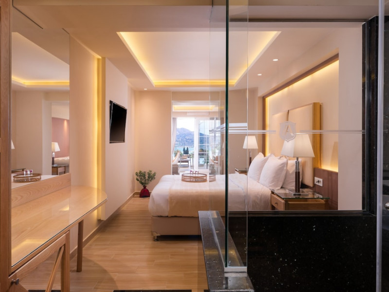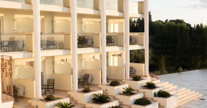 Located on the hillside of Bochali, Avalon Palace Hotel offers views of the Ionian Sea. It features an outdoor pool, a restaurant, and a bar. The air-conditioned rooms have a balcony with sea, mountain, and garden views, free WiFi, a flat-screen TV with satellite channels, and a fridge. Guests can relax in the garden or on the sun terrace. Free sun loungers and umbrellas are available by the pool. A complimentary shuttle operates within 3.3 kilometers. Free self-parking is available onsite. The hotel is located approximately 1 km from the nearest beach, Zakynthos Port, and the town's shopping center and bars. The Zakynthos airport is 7 km away. The hotel is closed between October 16 and April 30. The Avalon Palace Hotel is a hotel.