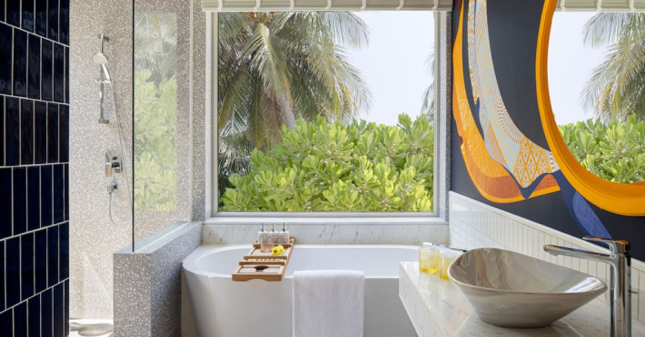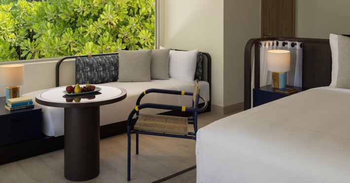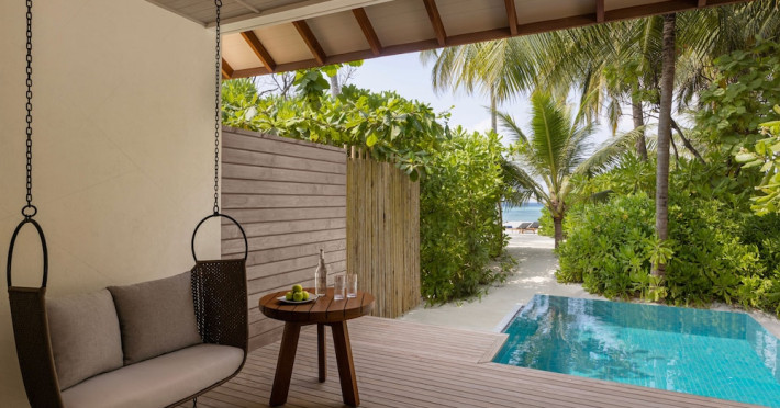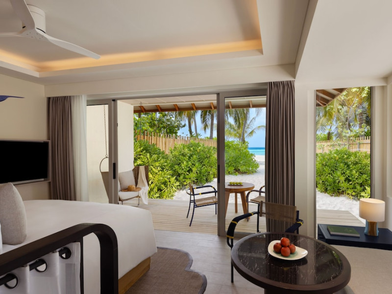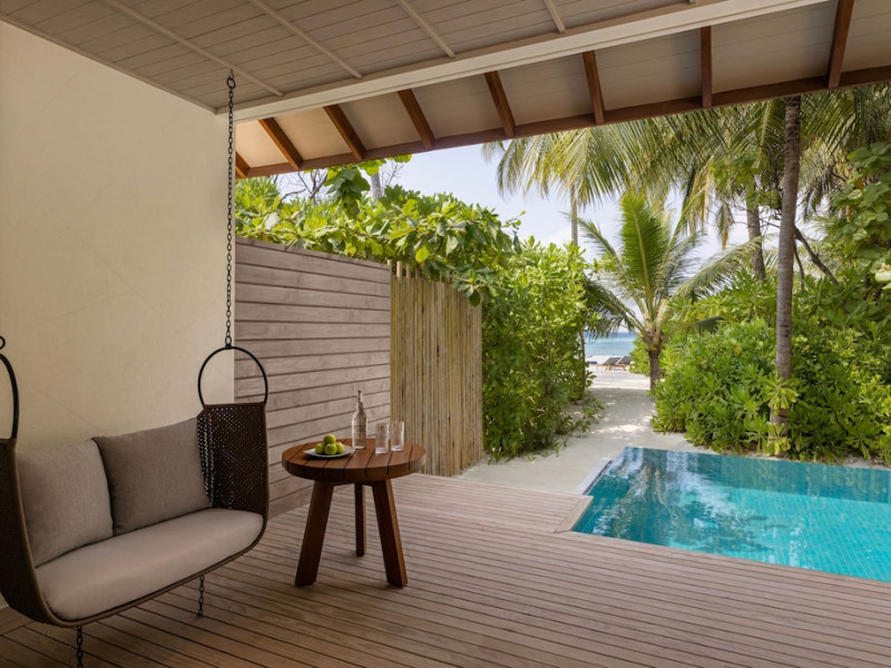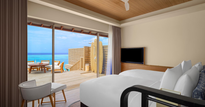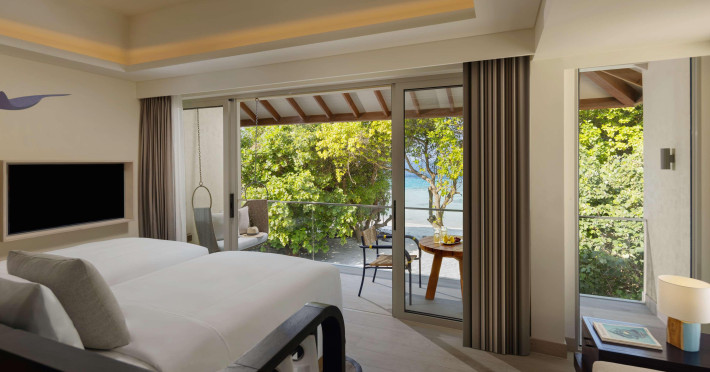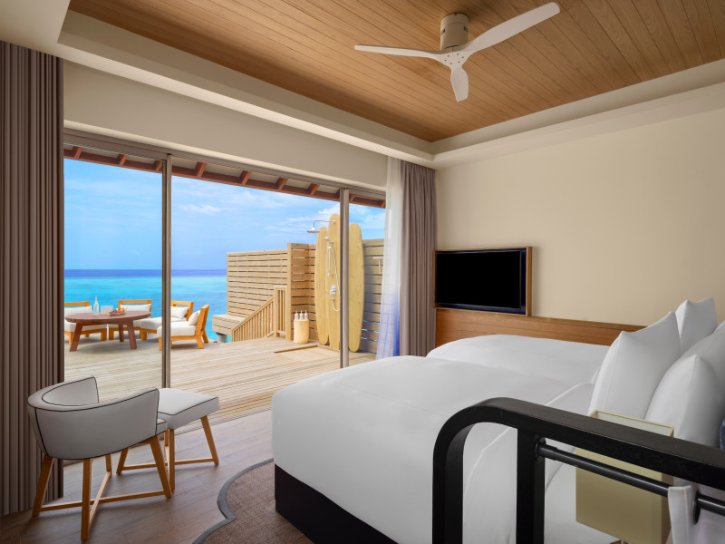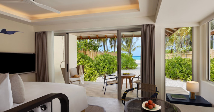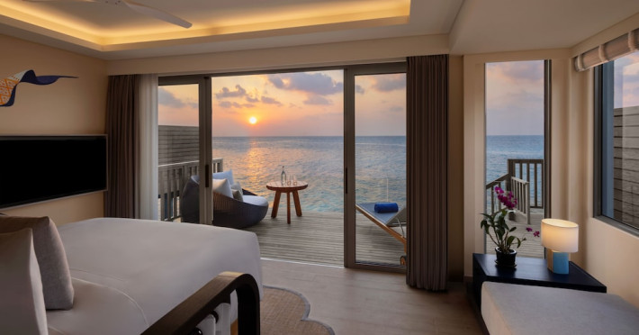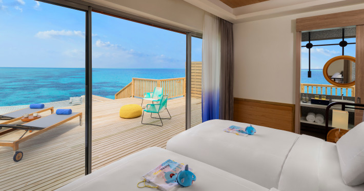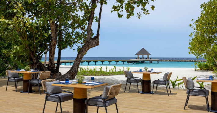 Avani+ Fares Maldives Resort offers 176 individually decorated guestrooms with complimentary wired and wireless internet access, Smart televisions with cable programming, minibars, and private bathrooms featuring rainfall showerheads and designer toiletries. Guests can enjoy a private beach, an outdoor pool, and a waterslide, as well as a full-service spa offering massages, body treatments, and facials. Dining options include four restaurants, a coffee shop/cafe, 24-hour room service, and multiple bars, including poolside and beach bars. A complimentary buffet breakfast is served daily. The resort also provides 24-hour reception, airport shuttle service, complimentary Wi-Fi in public areas, concierge services, babysitting (surcharge), express check-in/out, and dry cleaning/laundry services. Business travelers have access to conference space and a meeting room. The resort offers a program of organized activities and varied entertainment. All-inclusive rates are available. The Avani+ Fares Maldives Resort is a hotel.