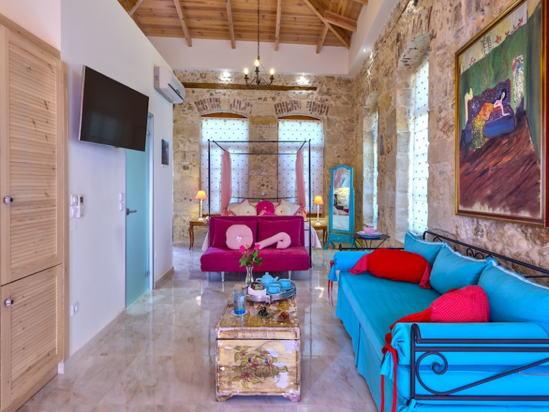 Facilities and services include restaurant, bar, wireless Internet access, room service (extra charge).Rooms feature air conditioning, wireless Internet access, telephone, TV, safe, fridge, mini bar (extra charge), hairdryer, balcony/terrace and bathroom.** Note: Reception with limited opening hours. Please advise flight number and estimated arrival time when booking this hotel.Address: Xanthoudidou 22 and Radamanthios, 74100 Rethymnon, Greece..