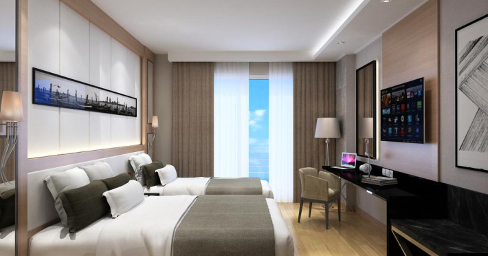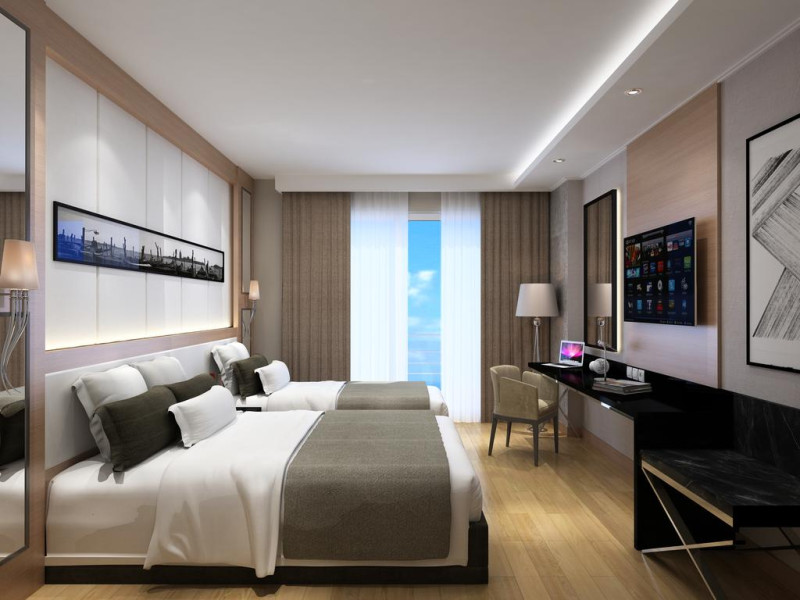 Toate camerele au balcon, baie cu dus, uscator de par, aer conditionat control individual, telefon direct, podea cu parchet laminat, mini bar, fierbator ceai si cafea, seif, TV satelit si canale de muzica.