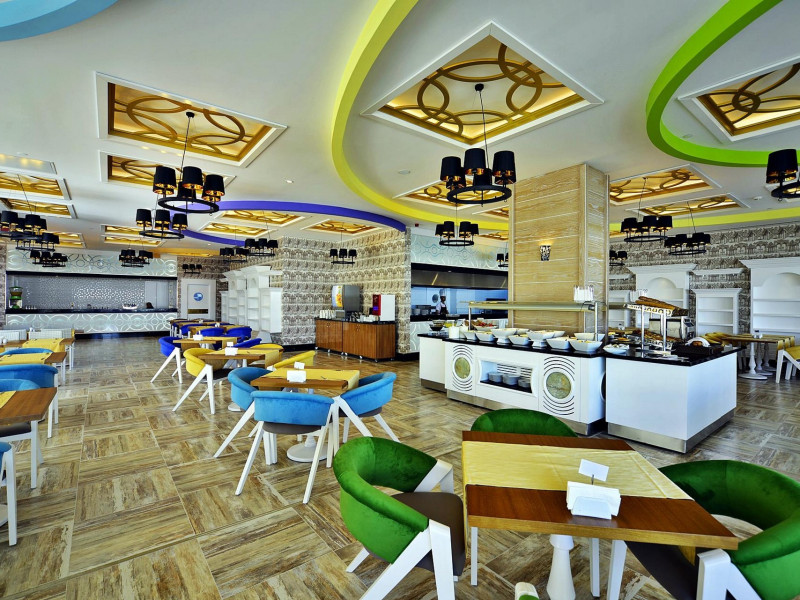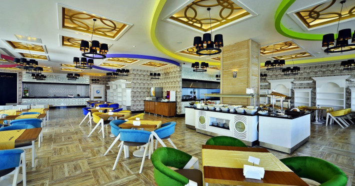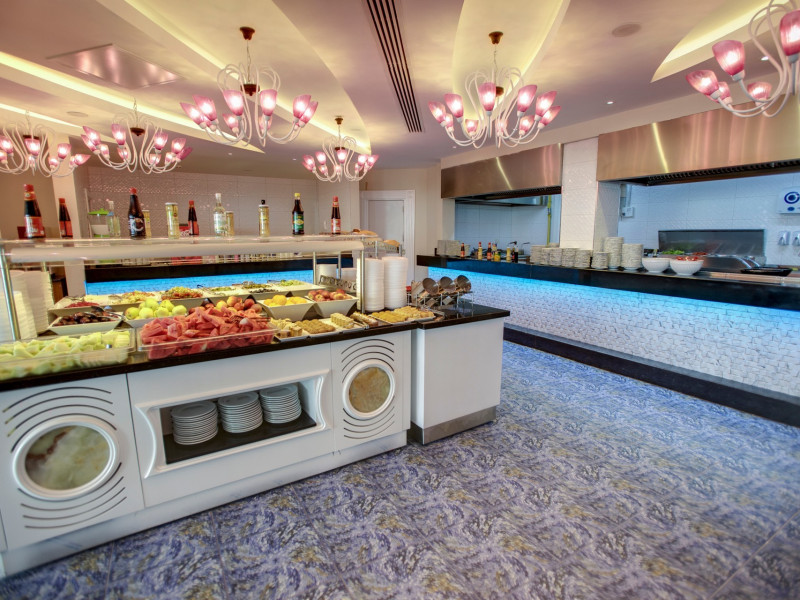 Restaurant principal: 07.00–10.30 mic dejun tip bufet, 12.30–14.00 pranz tip bufet, 19.00–21.00 cina bufet, 23.30–03.00 gustari de noapte, cafea, ceai, suc si bauturi nealcoolice la micul dejun, bauturi nealcoolice, bere la pranz si cina , vin si bauturi alcoolice selectate (toate produse local), bufet dietetic, bufet pentru copii la cina