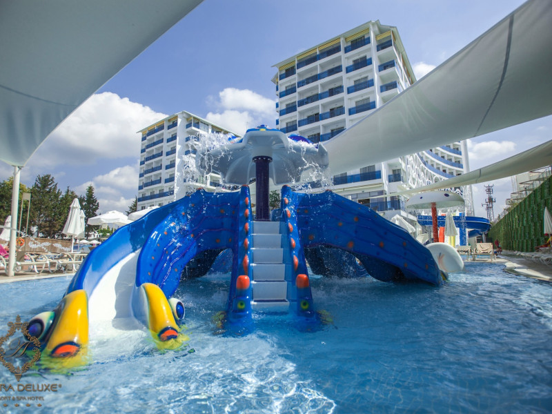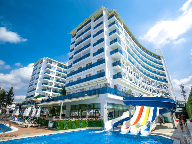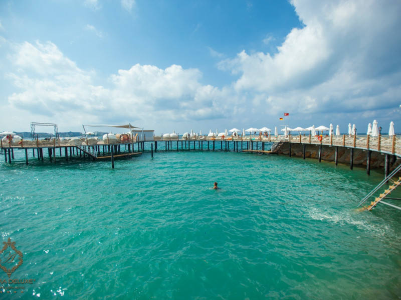 AZURA DELUXE este un hotel de inalta calitate, cu bucatarie renumita, fiind situat intr-o locatie atractiva, chiar langa frumoasa plaja cu nisip Incekum. Camerele sunt mobilate modern si tinand cont de confortul clientilor. Pentru a ajunge in centrul orasului Alanya, plin de oportunitati de divertisment si cumparaturi, puteti folosi microbuze locale, asa-numitele dolmus sau taxiuri.