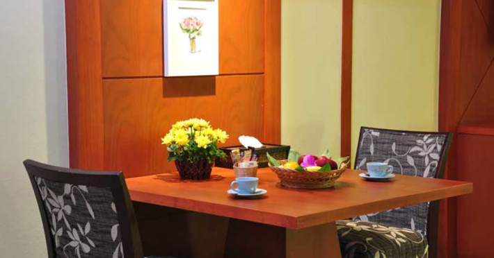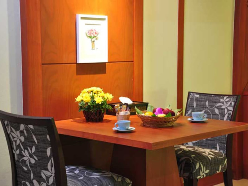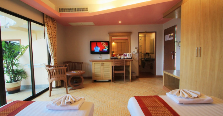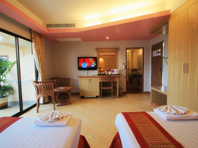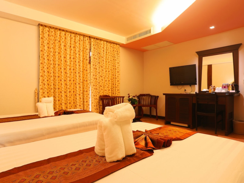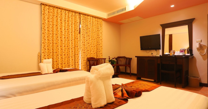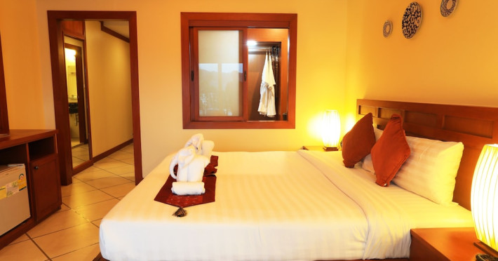 Camerele complexului au podea din gresie şi un amestec de mobilier modern şi tradiţional Lanna Thai. Fiecare cameră este dotată cu aer condiţionat, TV prin cablu şi minibar. Unele camere oferă vedere la piscină sau la mare. Hotelul pune la dispoziție room service.