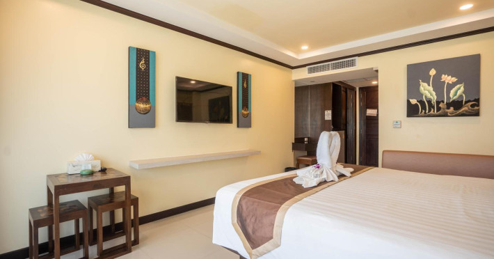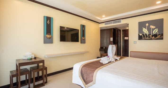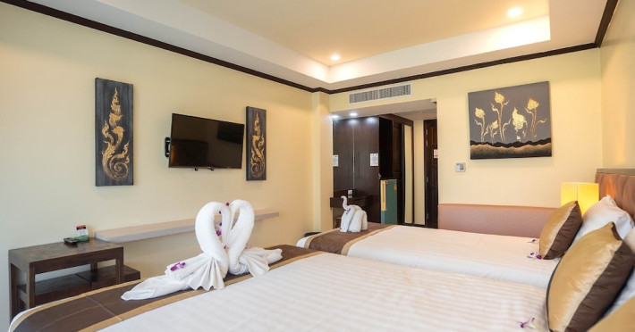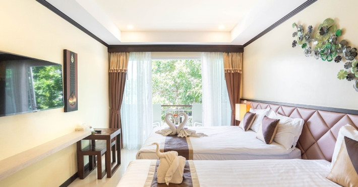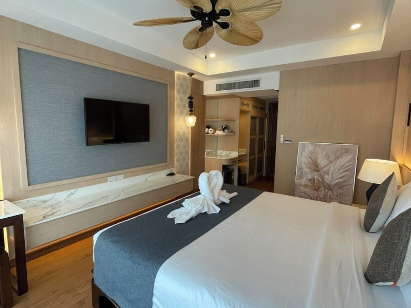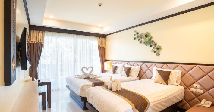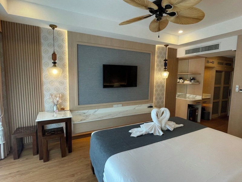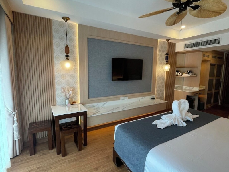 Located near Karon Beach, Baan Sailom Resort offers air-conditioned rooms with complimentary Wi-Fi, refrigerators, and Smart TVs. Guests can enjoy Thai cuisine at the Baan Sailom restaurant, room service during limited hours, and drinks at the bar/lounge. The hotel features an outdoor pool, garden, concierge services, a vending machine, a 24-hour front desk, luggage storage, and a safe deposit box at the front desk. A roundtrip airport shuttle is available for a surcharge (available on request), and motorcycle parking is available onsite. Each room has a private bathroom with a shower, and conveniences include safes and coffee/tea makers. Buffet or cooked-to-order breakfasts are available daily for a fee. The hotel also offers dry cleaning/laundry services and daily housekeeping. The Baan SaiLom Resort Karon Phuket is a hotel.
