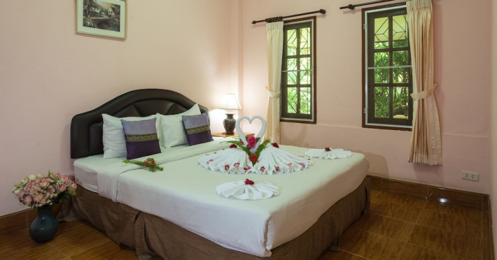 Cu amenajări thailandeze moderne, fiecare cameră include un frigider cu produse de minibar, un TV prin satelit și o zonă de relaxare. Baia privată este dotată cu duș și articole de toaletă gratuite.