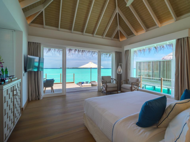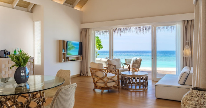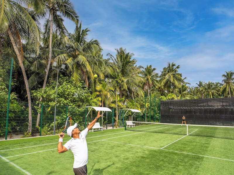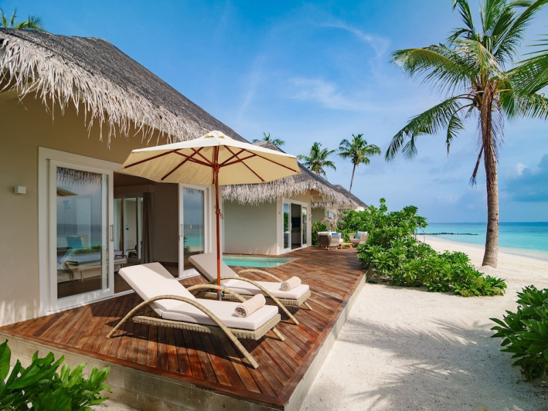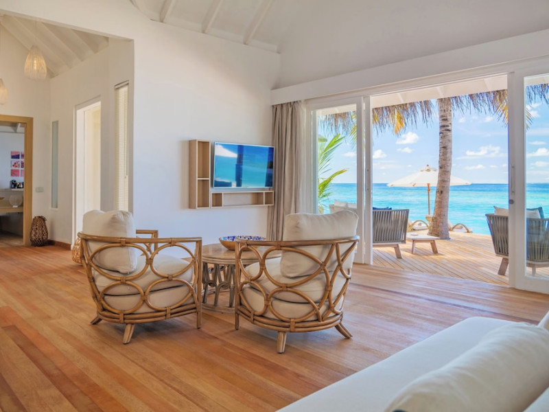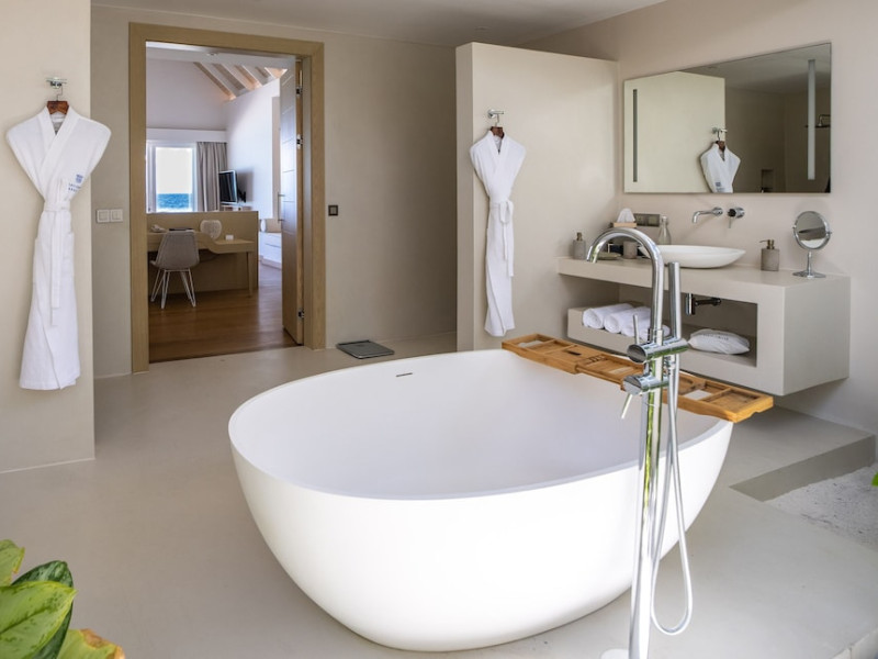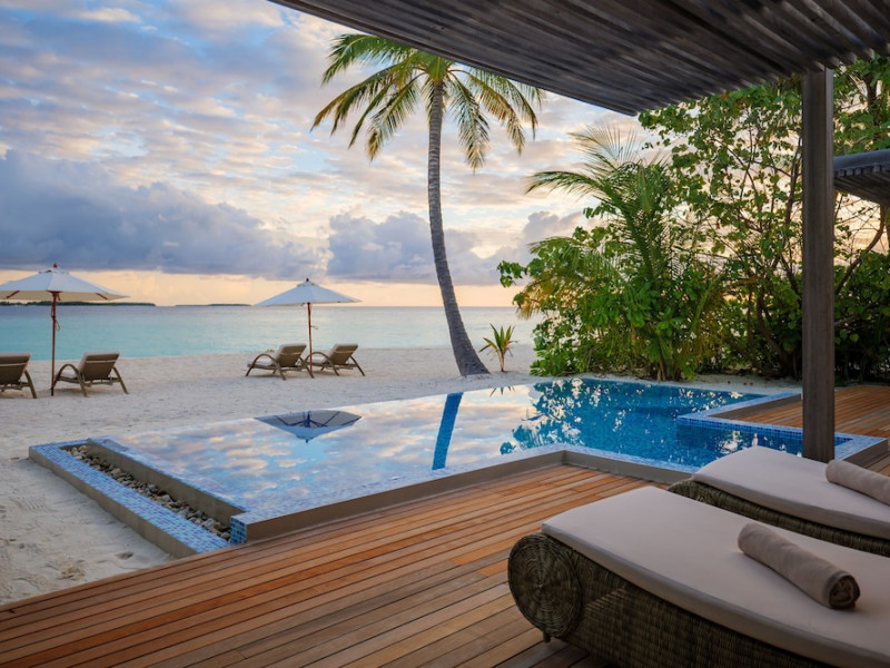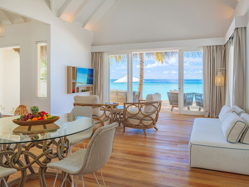 Baglioni Resort Maldives, a luxury all-inclusive resort in Dhaalu Atoll, opened August 1, 2019. Accessible via a 40-minute seaplane flight from Velana International Airport, the resort features 85 elegantly furnished villas on a lush tropical island with a 360-degree house reef. Enjoy stunning beaches, coconut palm trees, crystal-clear waters, and breathtaking sunset views. Amenities include a full-service spa, outdoor pool, 24-hour fitness center, private beach, complimentary Wi-Fi, concierge services, babysitting (surcharge), and a 24-hour front desk with luggage storage and a safe deposit box. Dining options include four restaurants offering Asian, Italian, Japanese, and sushi cuisine, with vegetarian, dairy-free, and halal options available. A complimentary buffet breakfast is served daily. Bars and lounges are available. Rooms feature air conditioning, minibars, flat-screen TVs, private balconies or patios, and private bathrooms with separate bathtubs and showers. Activities include tennis, table tennis, and canoeing. A kids' club is also available. The resort is within the region of Kandima Beach and Kudahuvadhoo Mosque. Please note that some dining options and beverages may incur additional charges. The Baglioni Resort Maldives is a hotel.