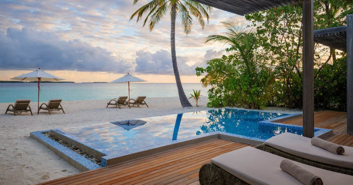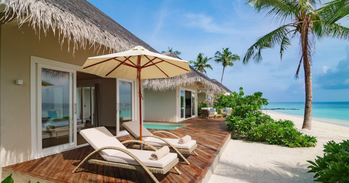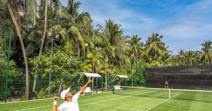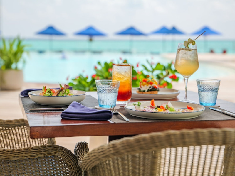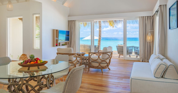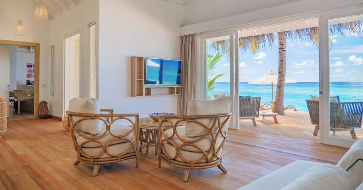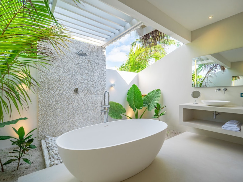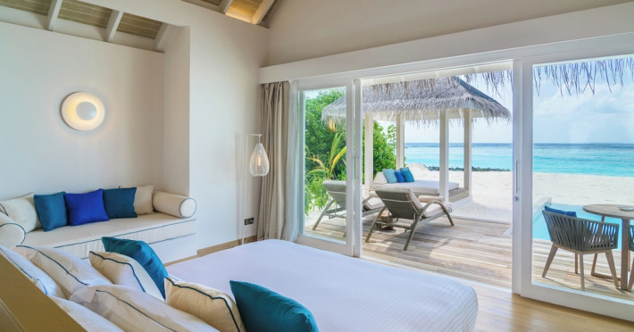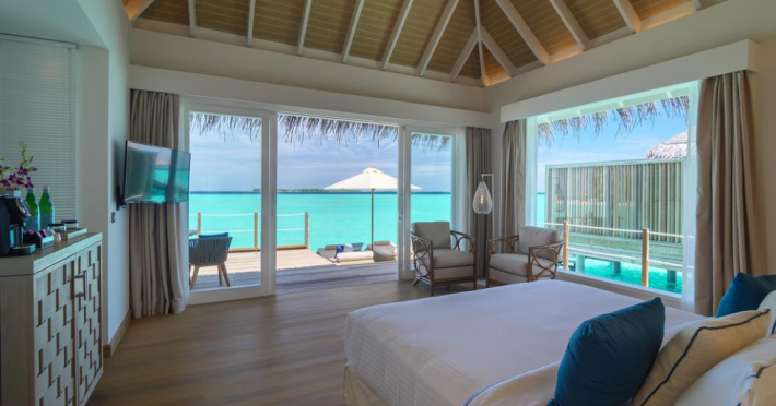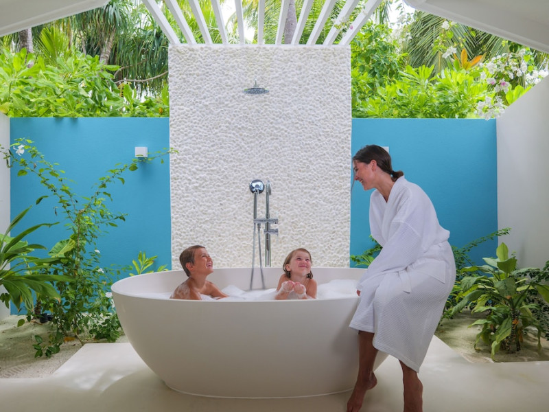 Baglioni Resort Maldives, a luxury all-inclusive resort in Dhaalu Atoll, opened August 1, 2019. Accessible via a 40-minute seaplane flight from Velana International Airport, the resort features 85 elegantly furnished villas on a lush tropical island with a 360-degree house reef. Enjoy stunning beaches, coconut palm trees, crystal-clear waters, and breathtaking sunset views. Amenities include a full-service spa, outdoor pool, 24-hour fitness center, private beach, complimentary Wi-Fi, concierge services, babysitting (surcharge), and a 24-hour front desk with luggage storage and a safe deposit box. Dining options include four restaurants offering Asian, Italian, Japanese, and sushi cuisine, with vegetarian, dairy-free, and halal options available. A complimentary buffet breakfast is served daily. Bars and lounges are available. Rooms feature air conditioning, minibars, flat-screen TVs, private balconies or patios, and private bathrooms with separate bathtubs and showers. Activities include tennis, table tennis, and canoeing. A kids' club is also available. The resort is within the region of Kandima Beach and Kudahuvadhoo Mosque. Please note that some dining options and beverages may incur additional charges. The Baglioni Resort Maldives is a hotel.