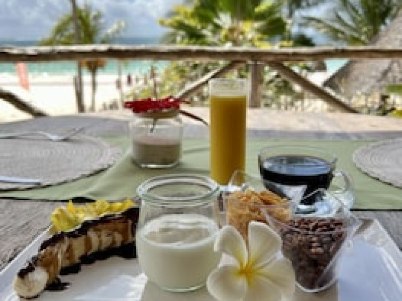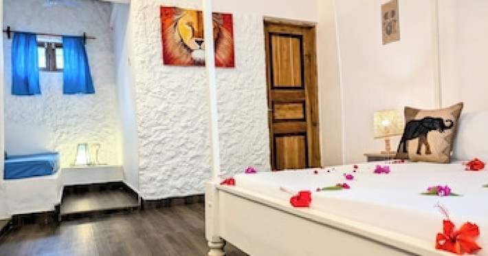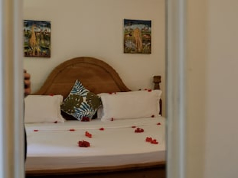 Camerele sunt decorate în stil swahili. Fiecare are zonă de relaxare, ventilator de tavan, baie cu duș și pat cu baldachin, drapat cu plasă de țânțari. Oaspeții se pot relaxa pe balcon.