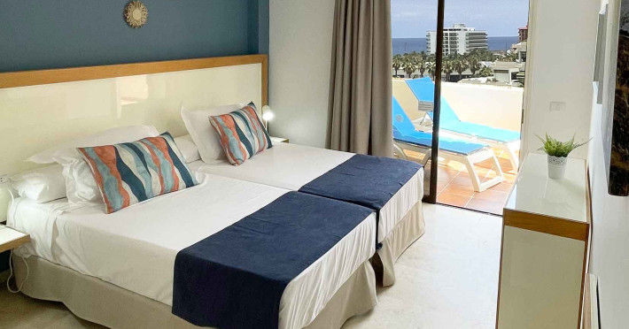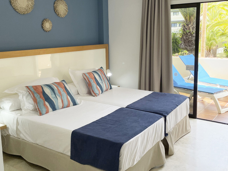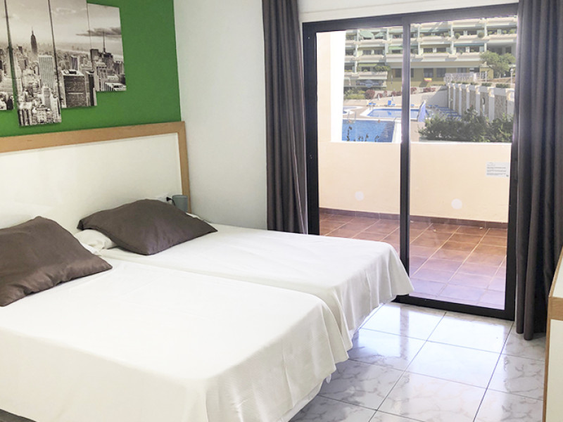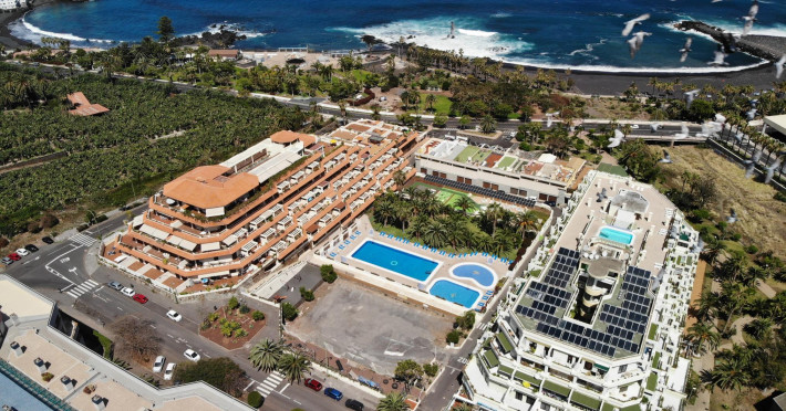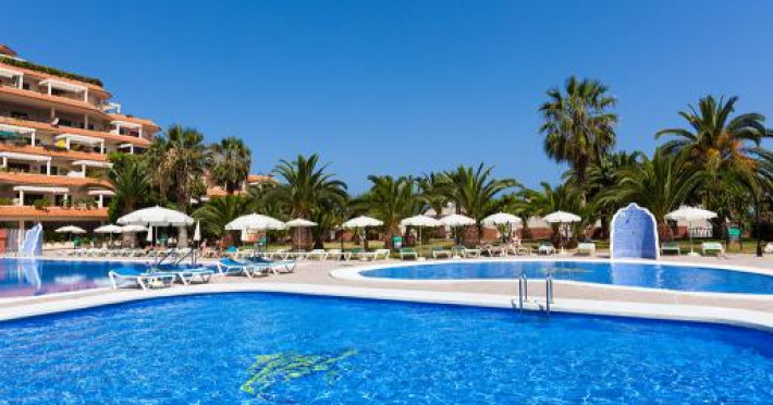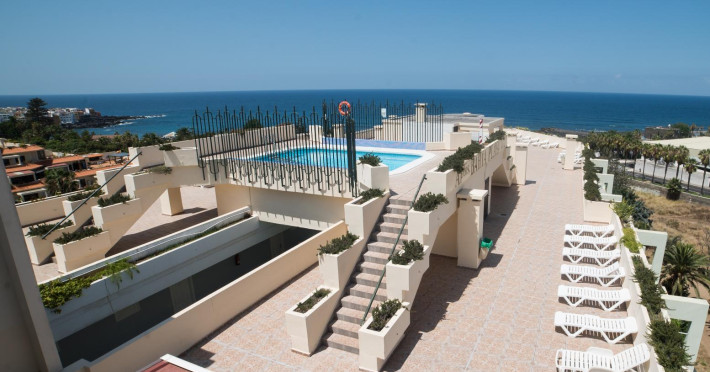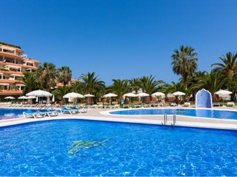 This apartment complex is located approximately 100 m from the nearest beach, Playa Jardin, in the resort of Puerto de la Cruz, just a few minutes walk from the diverse old town. Various shopping facilities and public transport links are located in the hotels vicinity.||Built in 1992, this apartment complex was renovated in 2001, and offers apartments spread over 5 floors. There is a lobby with a 24-hour reception and lifts awaiting guests. Facilities include a bar, a small supermarket, shops, and a restaurant with non-smoking area. ||The welcoming apartments are fitted with a bathroom, hair dreyer,shower, direct dial telephone, a separate bedroom, satellite TV (on request, for an additional fee), a kitchenette, a microwave, a fridge, the option of safe hire and a balcony or terrace (may be booked with partial sea views).||The outdoor complex includes two freshwater pools, a childrens paddling area and a sun terrace with sun loungers and parasols. Furthermore, for an additional fee the options of a sauna, a solarium, a professional massage service, tennis, table tennis, squash and pool are also available to guests. A public, professionally lead health and fitness centre is also to be found nearby.||breakfast and dinner are served buffet-mode
