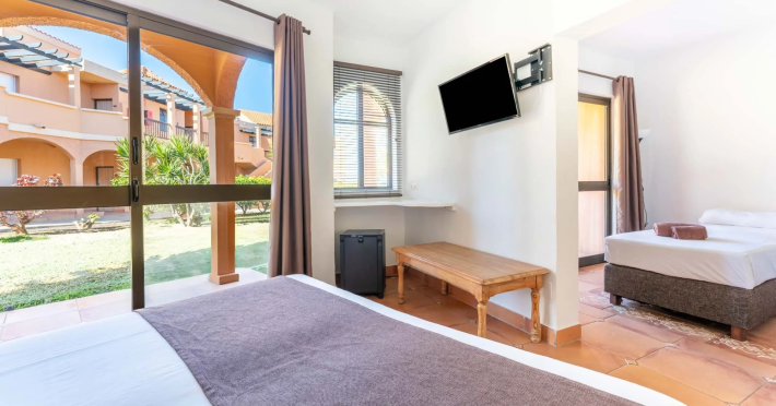 Located in La Pared on the southwest coast of Fuerteventura, near Viejo Rey Beach, Bakour Fuerteventura La Pared is ideal for surfing and watersports enthusiasts. It offers rooms and bungalows, each equipped with complimentary Wi-Fi. Rooms feature flat-screen TVs, bathrooms with complimentary toiletries and hair dryers, and electric kettles. Bungalows include a private patio with sea or garden views and a kitchen with a fridge, electric hob, toaster, and coffee maker. Guests can enjoy a buffet restaurant for breakfast and dinner, an à la carte lunch at the pool bar, and a bar/lounge. Facilities include an outdoor swimming pool with solarium, spa area, 2 tennis courts, a multi-sports court, gymnasium, spinning and yoga room, and a fitness center. The hotel provides a 24-hour front desk, multilingual staff, luggage storage, and free self-parking. Costa Calma is 7 km away, and Fuerteventura Airport is approximately a 1-hour drive. The Bakour Fuerteventura La Pared is a hotel.