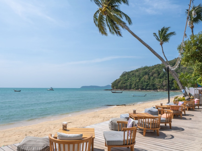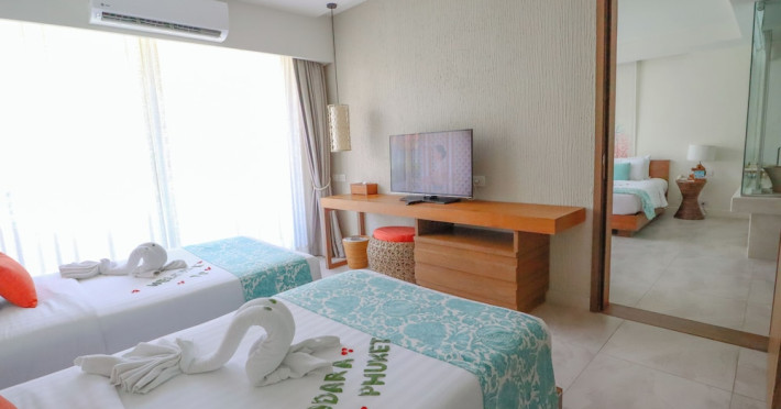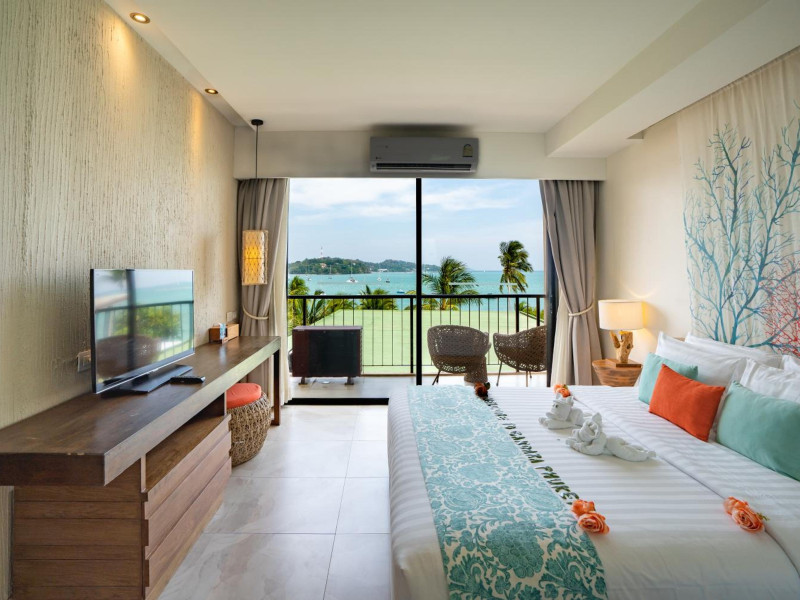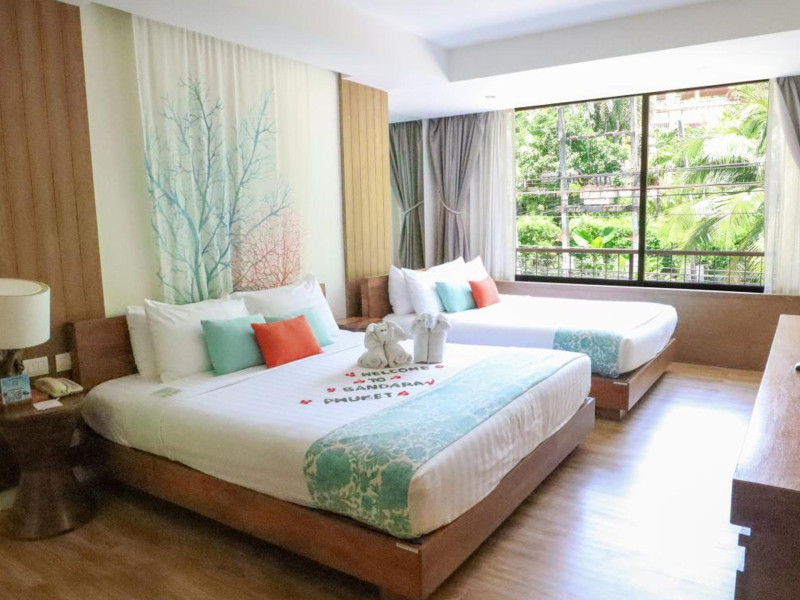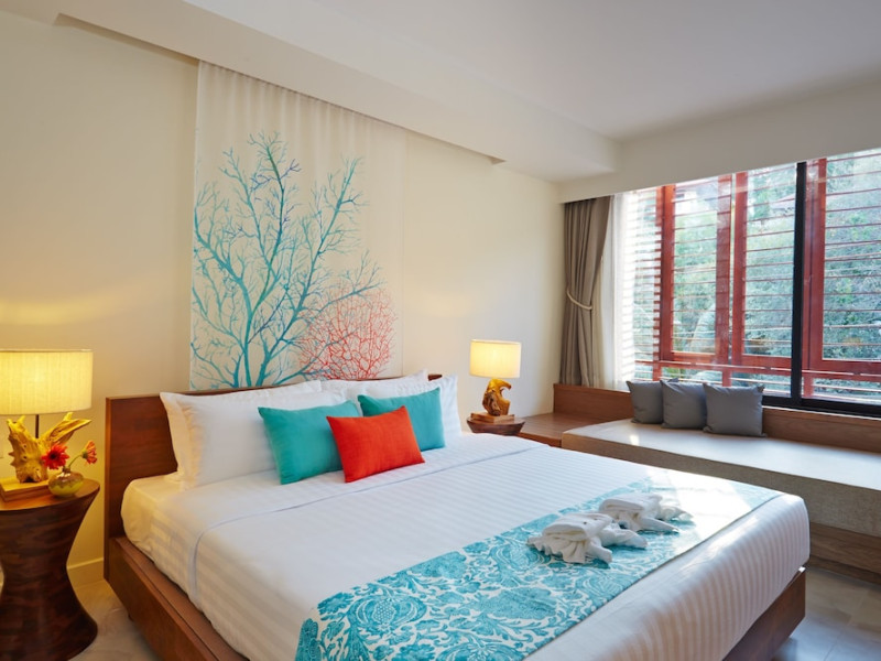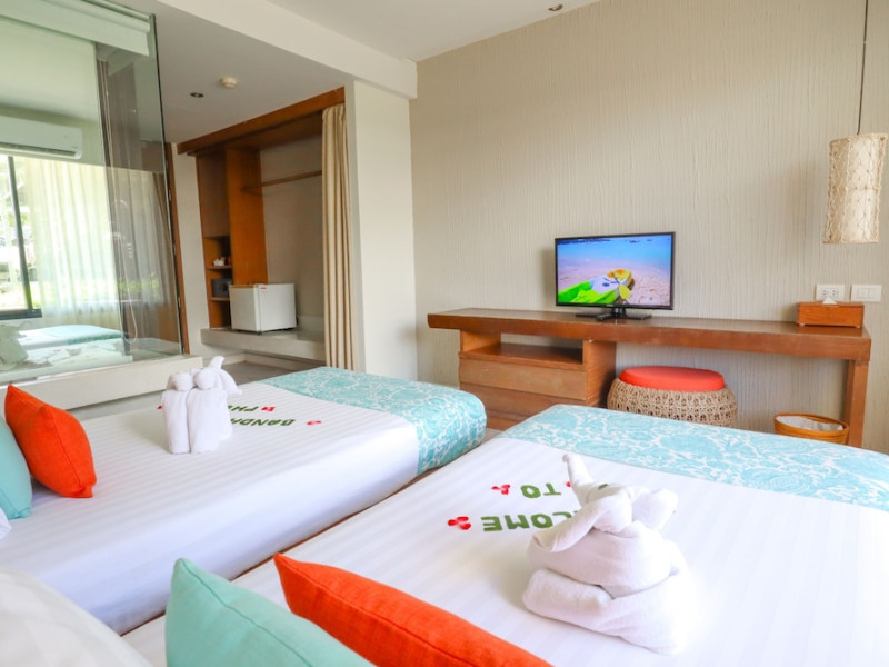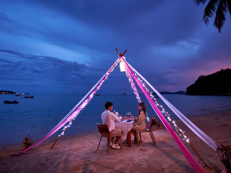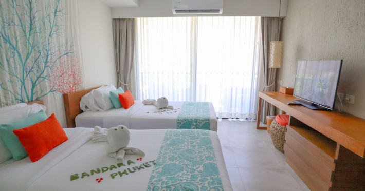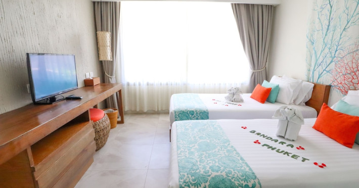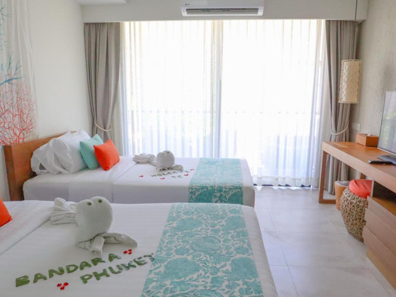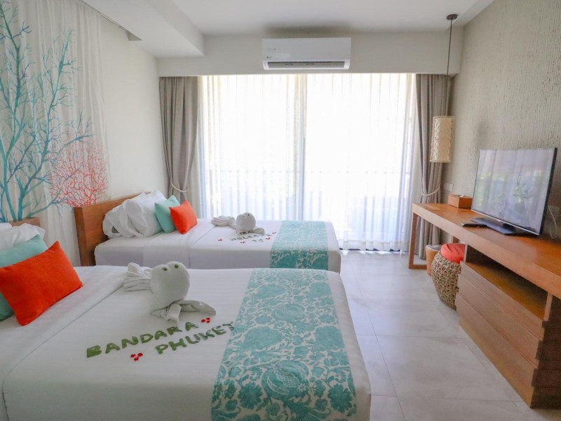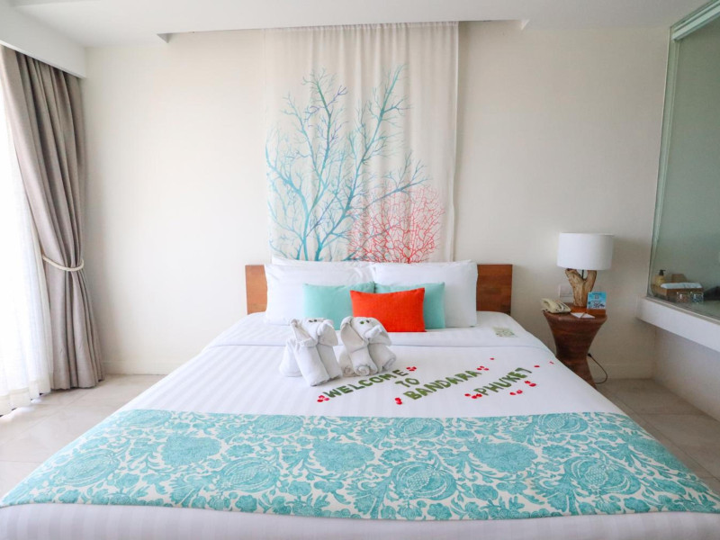 Bandara Beach Resort, Phuket, located in the Panwa area, offers stunning views of Ao Yon Bay. This beachfront hotel features modern rooms with air conditioning, flat-screen satellite TVs, safety deposit boxes, tea/coffee making facilities, and en-suite bathrooms with showers, hairdryers, and bathrobes. Amenities include an outdoor swimming pool, fitness room, tour desk, 24-hour reception with concierge services, and free WiFi. Dining options include Rise Restaurant (buffet breakfast) and the Andaman Bistro & Bar (Thai and international cuisine). The resort is a 5-minute walk from the beach, a 5-minute drive from Phuket Aquarium, and a 4km drive from Khaokhad View Tower. Airport shuttle service is available for a surcharge. The Bandara Beach Resort, Phuket is a hotel.