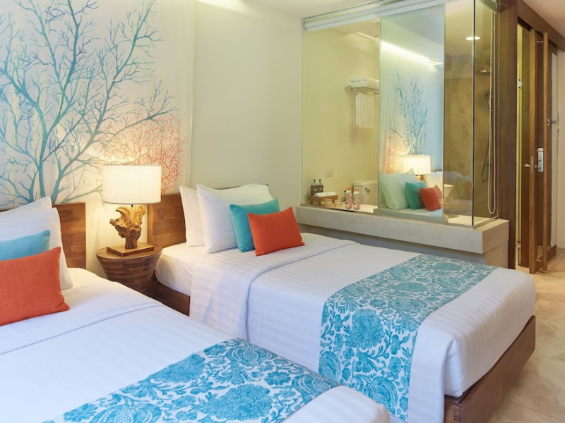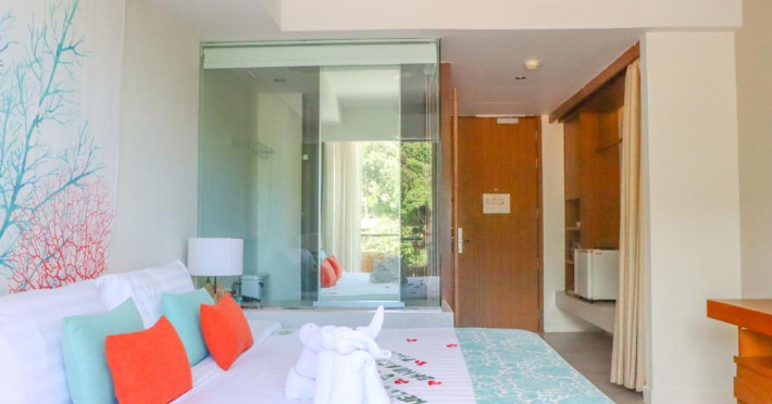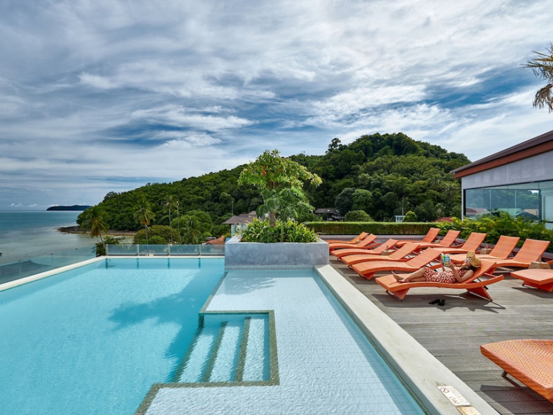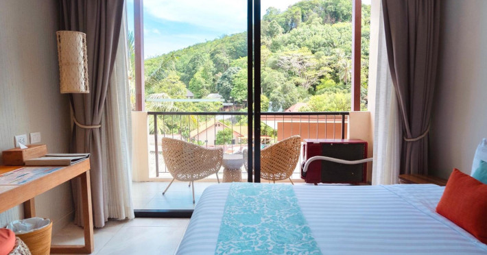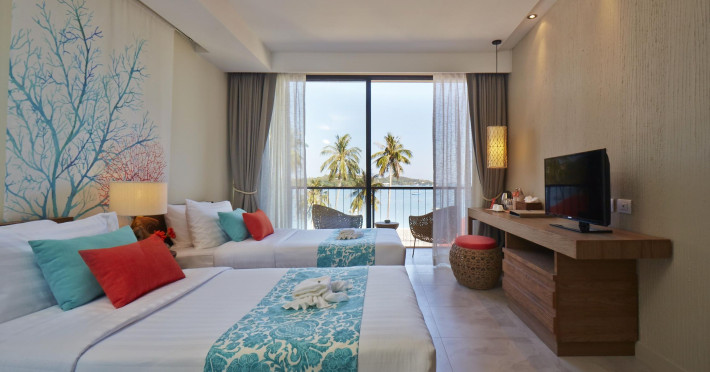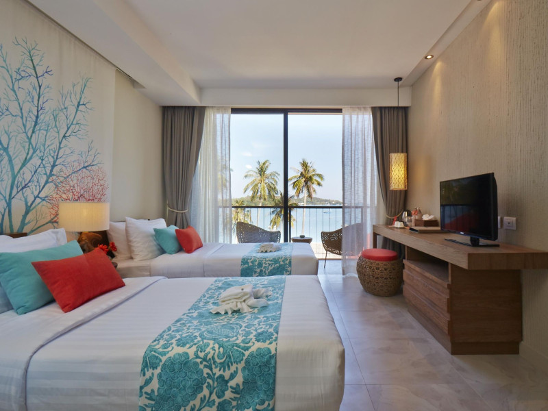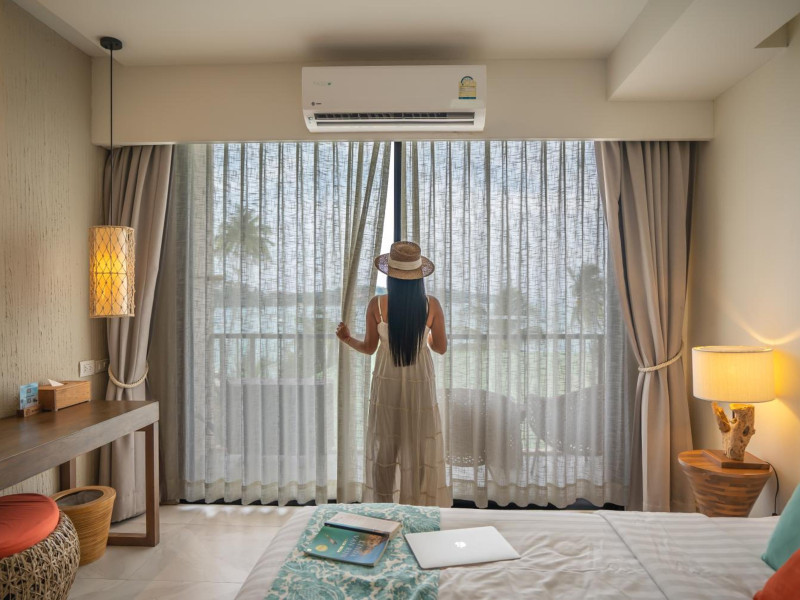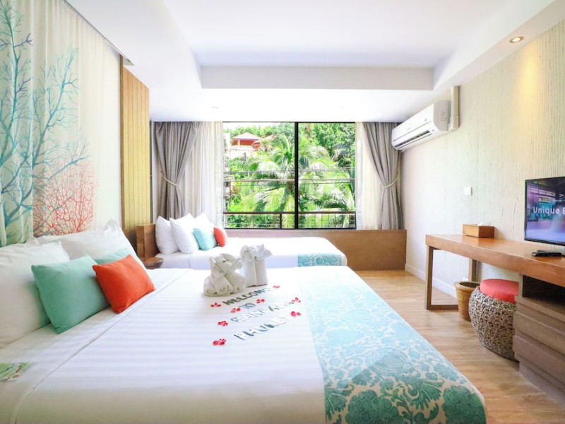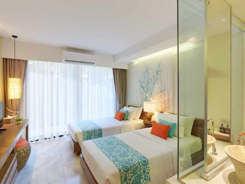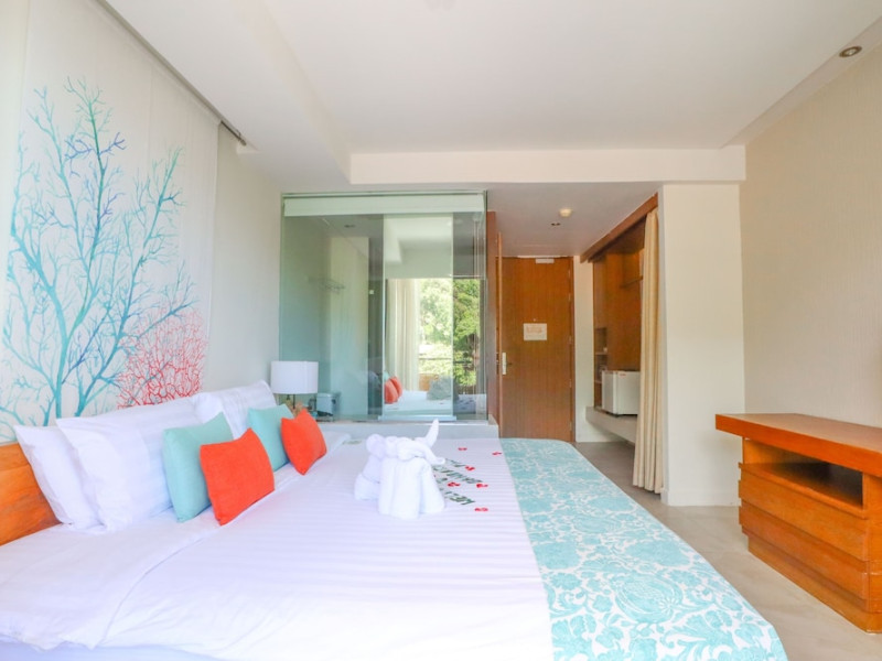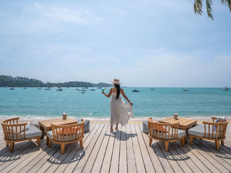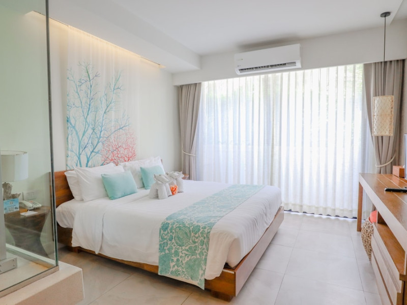 Bandara Beach Resort, Phuket, located in the Panwa area, offers stunning views of Ao Yon Bay. This beachfront hotel features modern rooms with air conditioning, flat-screen satellite TVs, safety deposit boxes, tea/coffee making facilities, and en-suite bathrooms with showers, hairdryers, and bathrobes. Amenities include an outdoor swimming pool, fitness room, tour desk, 24-hour reception with concierge services, and free WiFi. Dining options include Rise Restaurant (buffet breakfast) and the Andaman Bistro & Bar (Thai and international cuisine). The resort is a 5-minute walk from the beach, a 5-minute drive from Phuket Aquarium, and a 4km drive from Khaokhad View Tower. Airport shuttle service is available for a surcharge. The Bandara Beach Resort, Phuket is a hotel.