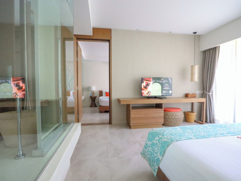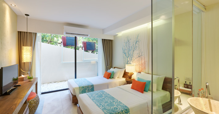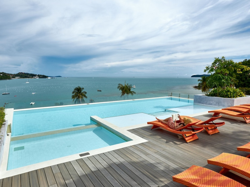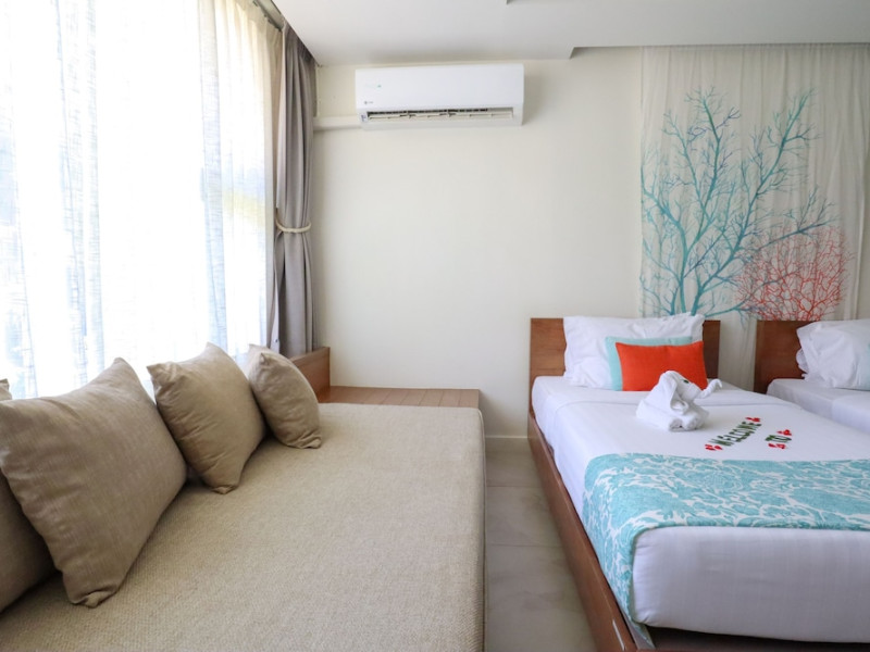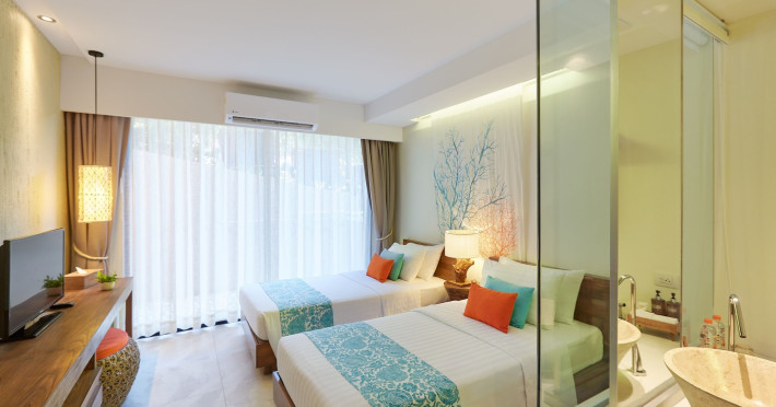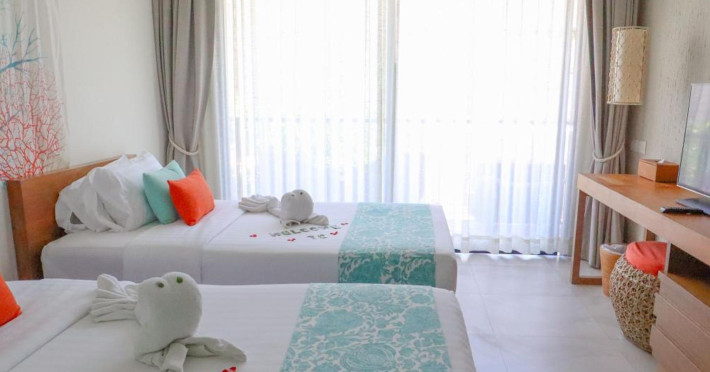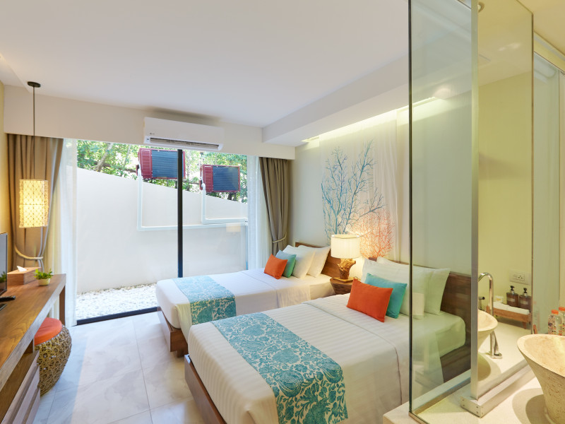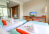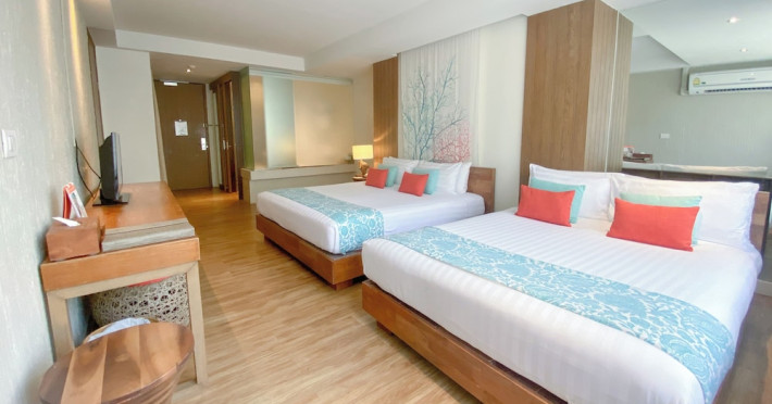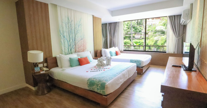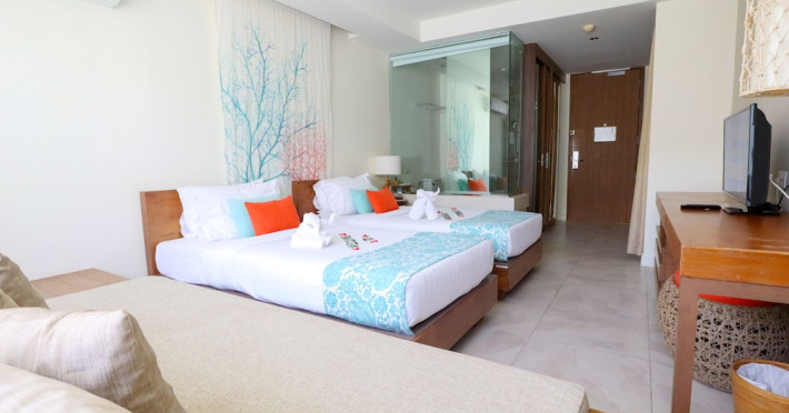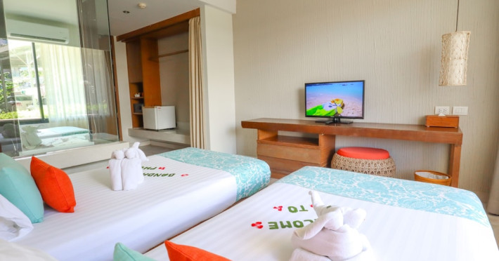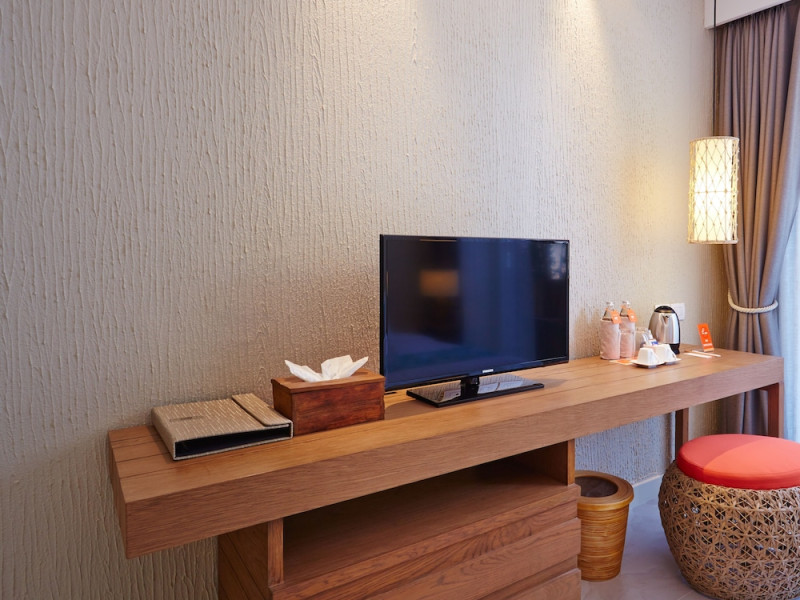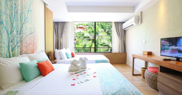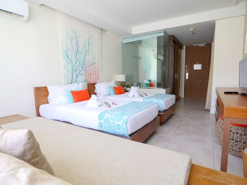 Bandara Beach Resort, Phuket, located in the Panwa area, offers stunning views of Ao Yon Bay. This beachfront hotel features modern rooms with air conditioning, flat-screen satellite TVs, safety deposit boxes, tea/coffee making facilities, and en-suite bathrooms with showers, hairdryers, and bathrobes. Amenities include an outdoor swimming pool, fitness room, tour desk, 24-hour reception with concierge services, and free WiFi. Dining options include Rise Restaurant (buffet breakfast) and the Andaman Bistro & Bar (Thai and international cuisine). The resort is a 5-minute walk from the beach, a 5-minute drive from Phuket Aquarium, and a 4km drive from Khaokhad View Tower. Airport shuttle service is available for a surcharge. The Bandara Beach Resort, Phuket is a hotel.