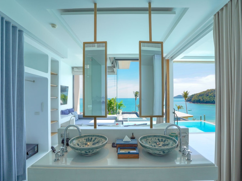 Located on Panwa Beach, Bandara Pool Villas, Phuket offers private villas with sea views. Most villas feature a private pool, with some offering access to a shared infinity pool. Each air-conditioned villa includes a flat-screen TV, DVD player, sofa, and a terrace with outdoor furniture. Ensuite bathrooms provide a shower, bathtub, hairdryer, and free toiletries. Guests have access to free WiFi, a restaurant serving local and international cuisine, a bar, a fitness centre, an outdoor pool, and a steam room. The resort also offers a spa with massages, body treatments, and facials. Additional amenities include concierge services, wedding services, a 24-hour front desk, dry cleaning/laundry services, and room service. Airport shuttle service is available for a surcharge. Phuket Aquarium is nearby. The Bandara Pool Villas, Phuket (ex Bandara Villas Phuket) is a hotel.