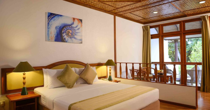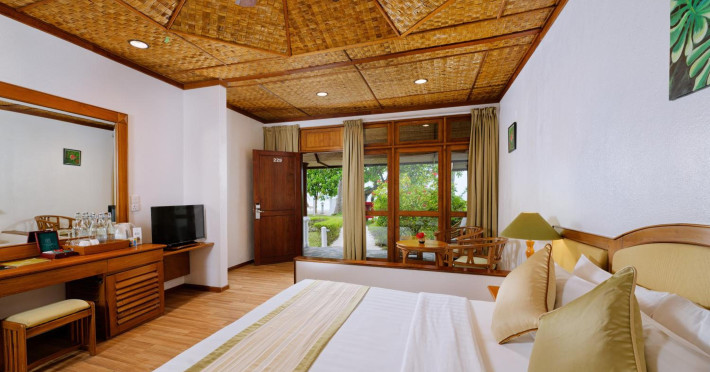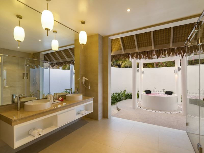 Bandos Maldives, a private island resort located on North Male' Atoll, offers 220 air-conditioned rooms with minibars, Smart TVs, and private bathrooms featuring complimentary toiletries and hair dryers. Enjoy complimentary Wi-Fi and cable programming. The resort is a 10-minute speedboat ride (7 km) from Velana International Airport (MLE). All-inclusive rates are available, including meals and beverages at most onsite dining establishments (some restaurants, special dinners, certain beverages, and other amenities may incur extra charges). Dining options include four restaurants featuring international cuisine (including Japanese Teppanyaki and Chinese breakfast options), a beach bar, a poolside bar, and three bars/lounges. 24-hour room service is also available. Recreational amenities include an outdoor pool, a sauna, a fitness center, a spa offering massages, body treatments, and facials, a water sports center, a dive school, and a kids' club with babysitting services (surcharge). Additional amenities include a business center with meeting rooms, dry cleaning/laundry services, a 24-hour front desk, an arcade/game room, and a complimentary airport shuttle (surcharge applies, 24-hour availability). Some rooms offer balconies overlooking the garden or beach, separate living rooms, or outdoor hot tubs. Nearby beaches include Kurumba, Full Moon, Paradise Island, Thulhagiri, Gili Lankanfushi, Kani, Dhonveli, Hulhumale, Laguna, Vadoo, Villingili Public, and Rasfannu. Note: Mandatory charges apply for Christmas and New Year's Gala Dinners. The Bandos Maldives is a Beach Resort, Honeymoon, Tourist hotel. The nightlife/restaurants are located in the hotel.