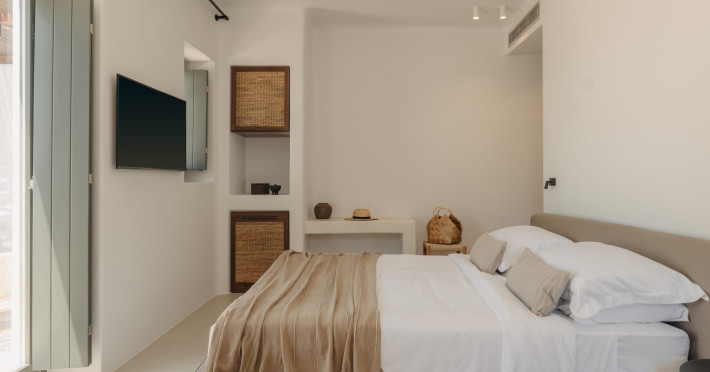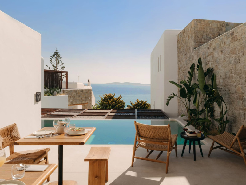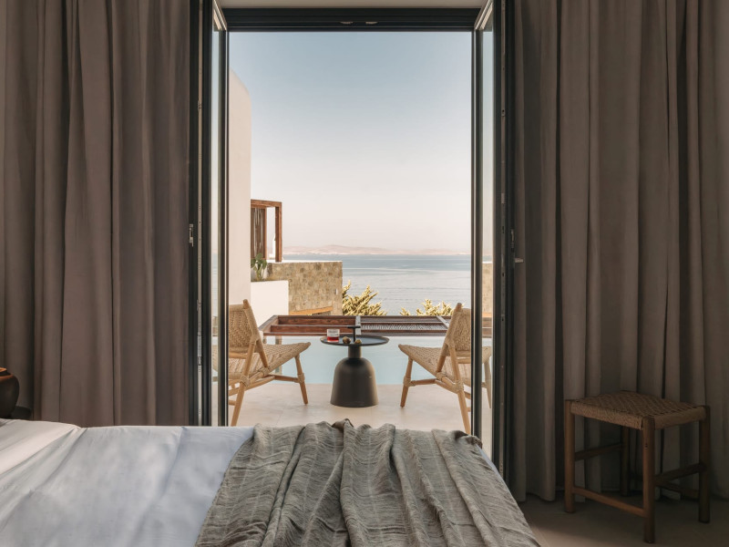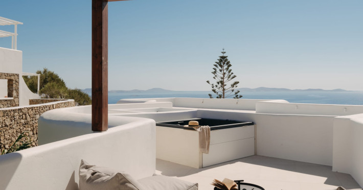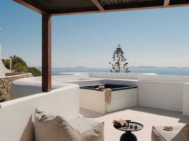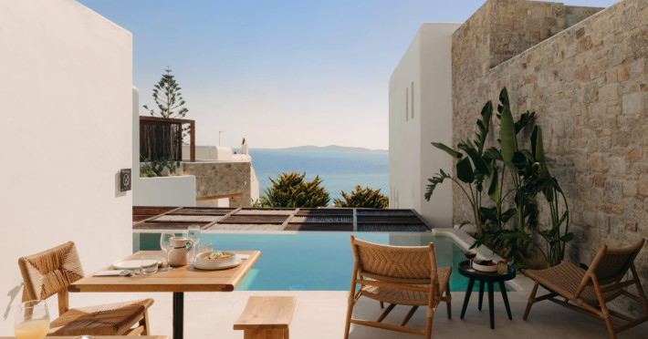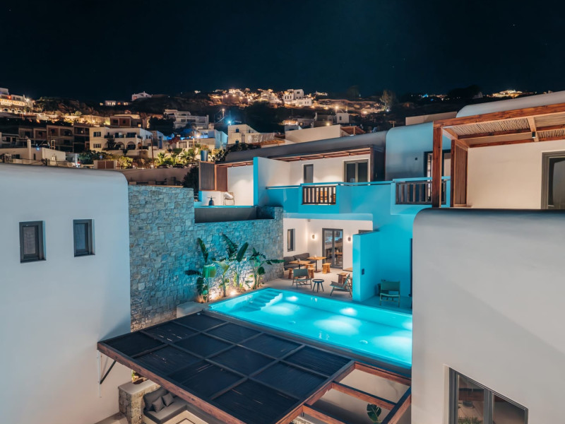 Welcome to Bard De Sol, the ultimate Mykonian luxury retreat. Our hotel is nestled in one of the most enchanting locations on the island, providing guests with a mesmerising view of Agios Stefanos beach and the port of Mykonos.At Bard De Sol, we take pride in offering a unique fusion of modern amenities and authentic Greek hospitality, ensuring an unforgettable vacation experience.Our 13 beautifully appointed rooms and suites are a haven of comfort and luxury, each offering an awe-inspiring view of the Aegean Sea. Whether you are seeking a serene retreat or a thrilling adventure, Bard De Sol is the ideal destination to create treasured memories that will last a lifetime.Our state-of-the-art security measures ensure your safety and peace of mind.Our hotel features an array of top-notch facilities, including a well-equipped fitness center, Sauna Therapy Room, 16-hour in-room dining, and our entertainment venue Sol Bar.Our complimentary parking makes it a breeze to explore the island while basking in the breathtaking vistas of the Aegean Sea.At Bard De Sol, we take immense pride in delivering exceptional amenities and bespoke services tailored to meet your every desire. Whether you crave a tranquil poolside escape, an invigorating workout session, or a fascinating tour of Mykonos, Bard De Sol offers the quintessential blend of luxury and relaxation to suit the discerning tastes of our esteemed guests. Book your stay today, and embark on a journey of unparalleled beauty and hospitality in the captivating land of Mykonos.