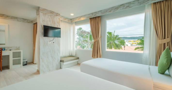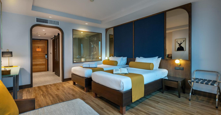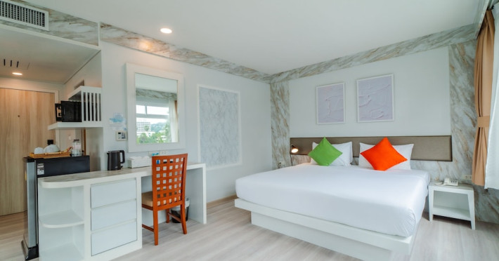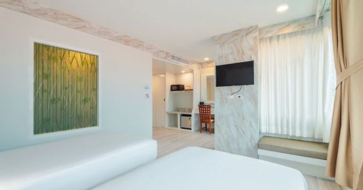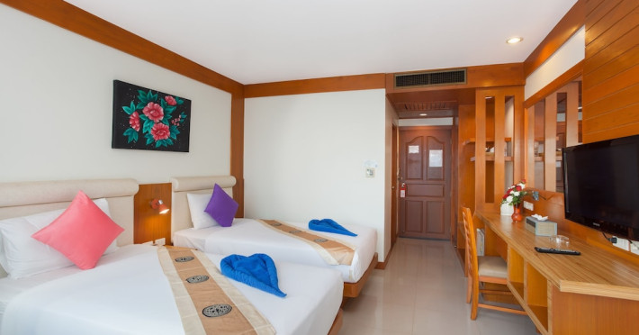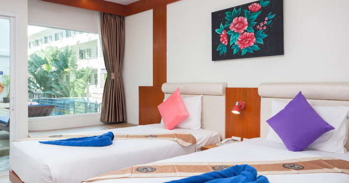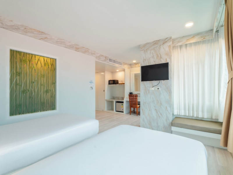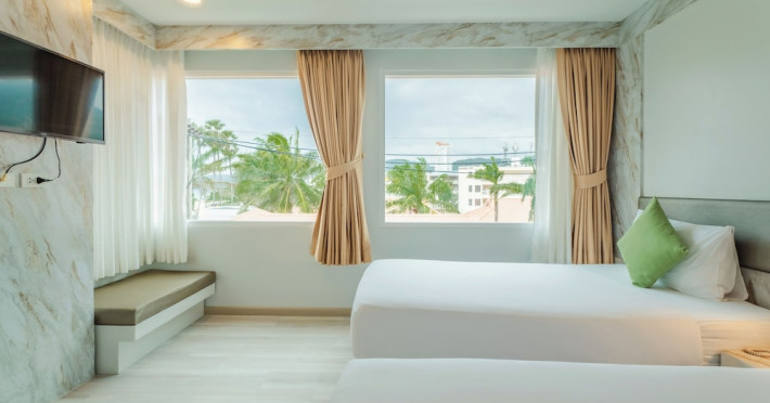 Baumancasa Beach Resort in Karon offers a tranquil escape, a minute's walk from Karon Beach and a short drive from Kata Beach. The resort features contemporary Asian-inspired rooms with private balconies, free Wi-Fi, and flat-screen TVs. Amenities include three outdoor swimming pools (one rooftop with panoramic views), a fitness center, sauna, massage room, and a bar and restaurant (LA LUNA bistro & bar offers beachfront dining and a swim-up bar). A roundtrip airport shuttle is available for a surcharge. Buffet breakfast is available daily for a fee. Free self parking is available onsite. Nearby attractions include Karon Market, Karon Temple, Dino Park Mini Golf, Kata Beach, and Patong Beach (distances vary). Phuket International Airport is approximately 45 km away. The Baumancasa Beach Resort is a Tourist hotel. Located in Beach - Karon Beach area. The nightlife/restaurants are easily accessible by taxi or bus from the hotel.