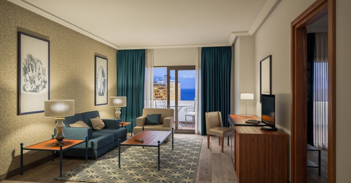Standard: Air-conditioned rooms, fully equipped bathroom with hairdryer, TV, telephone, free WI-FI connection and balcony. Safe for rent and minibar with charge. Possibility of Side Sea View Room and Sea View Room.Suite: with separate bedroom, air conditioning, bathroom with hydromassage bathtub and hairdryer, lounge, T.V., telephone, free WI-FI connection, safe and terrace with jacuzzi. Minibar with charge.