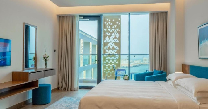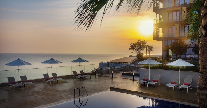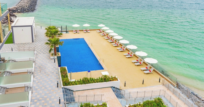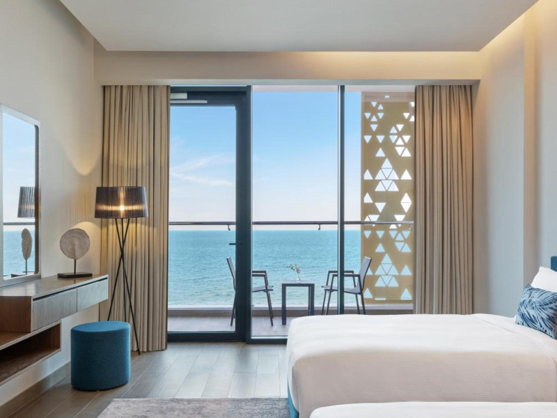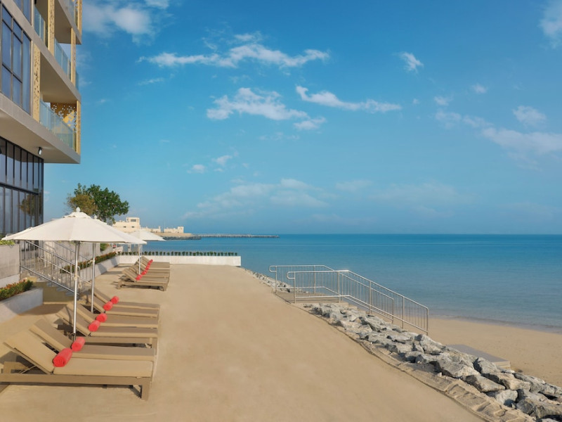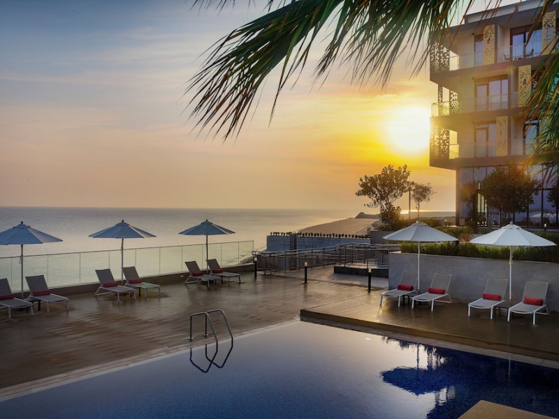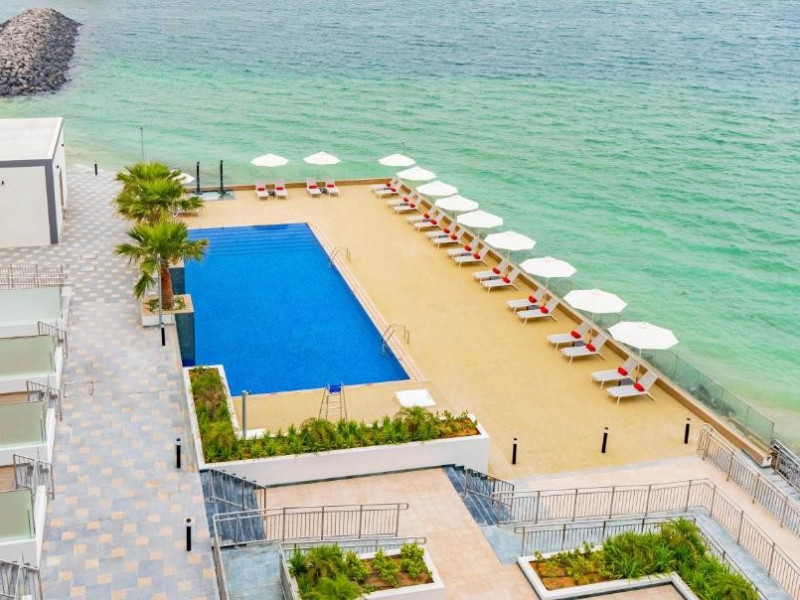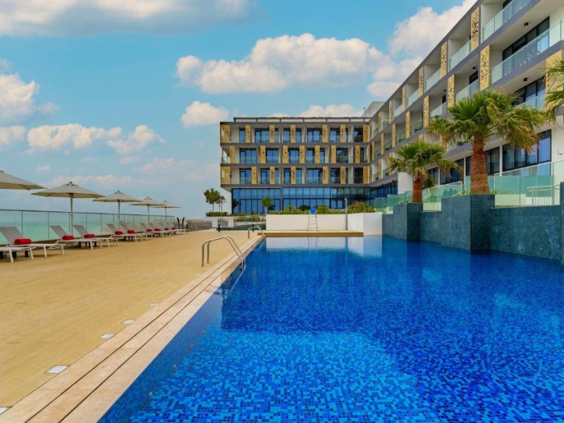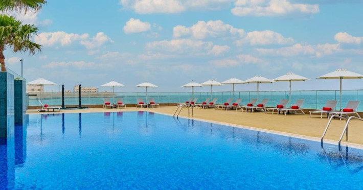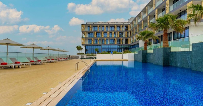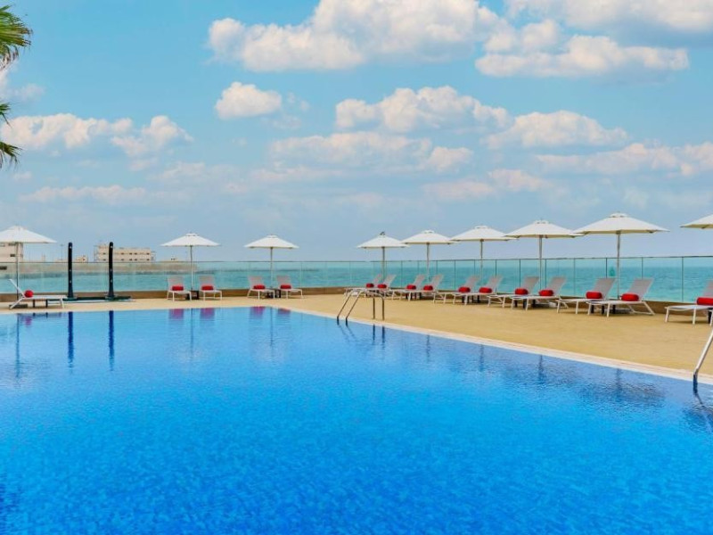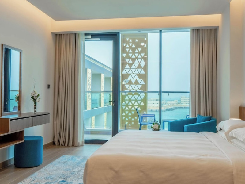 Located in Al Mirfa, Beach Bay Hotel Mirfa offers accommodation with an outdoor swimming pool, garden, terrace, restaurant, bar, and sauna. The hotel features air-conditioned rooms with free WiFi, a desk, kettle, refrigerator, microwave, safety deposit box, flat-screen TV, and a private bathroom with a bidet. Some rooms also offer a balcony. Guests can enjoy a buffet breakfast. The hotel provides room service, concierge service, currency exchange, a 24-hour front desk, multilingual staff, and luggage storage. Additional amenities include a fitness center, coffee shop/cafe, and a poolside bar. Free valet parking is available onsite. The hotel is 200 metres from Al Mirfa Beach and approximately 146.5 - 157 km from Abu Dhabi/Zayed International Airport. The Beach Bay Hotel Mirfa, Edge by Rotana is a hotel.