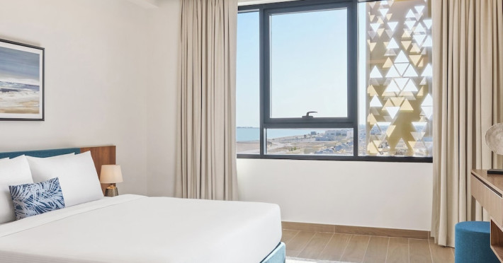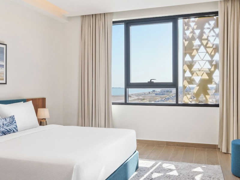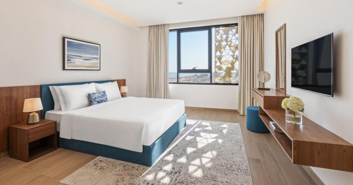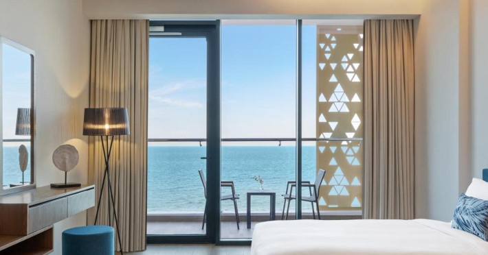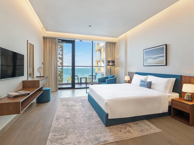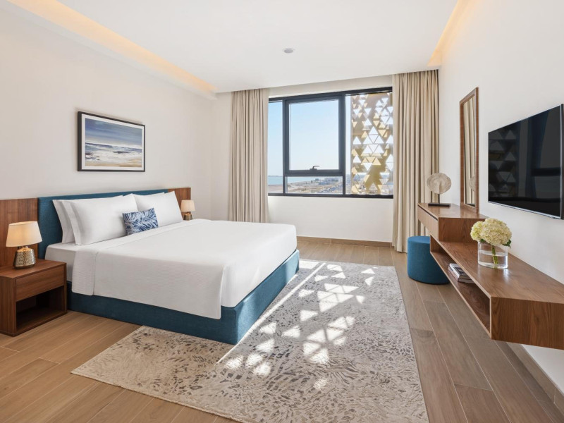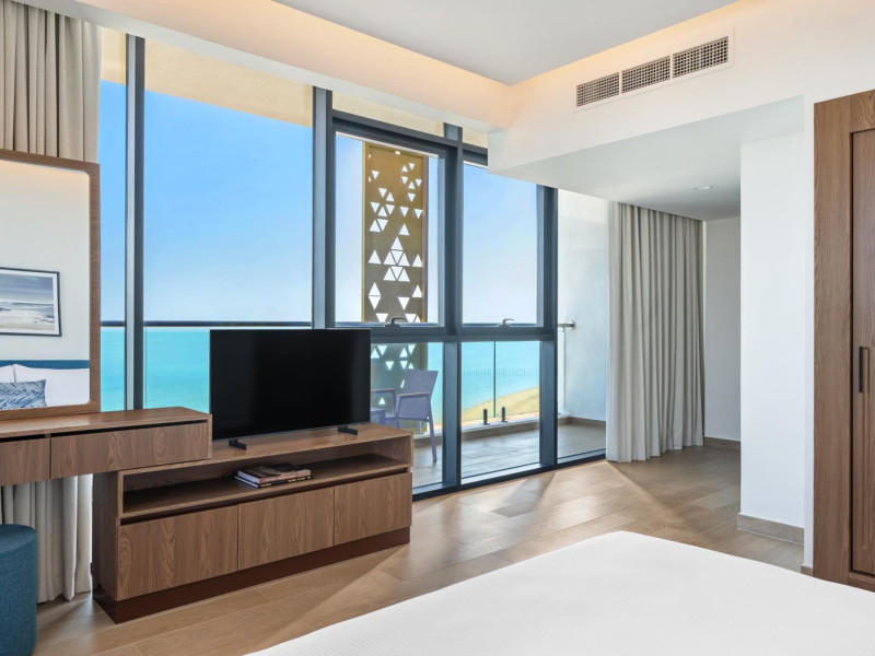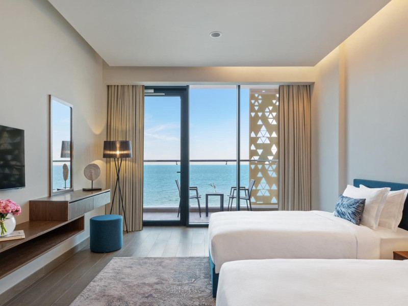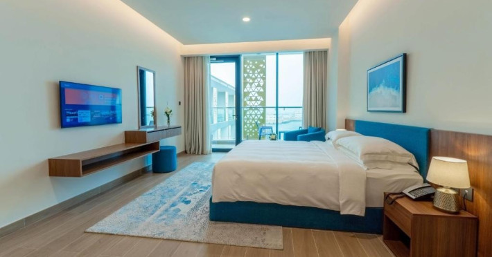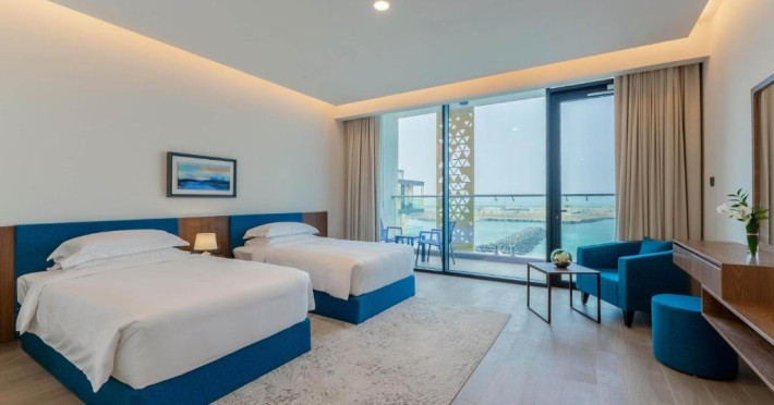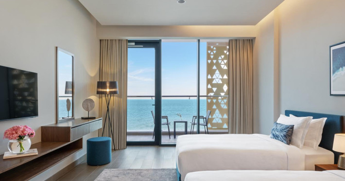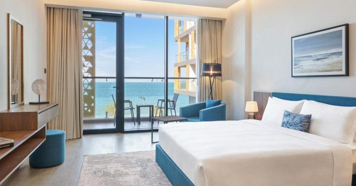 Located in Al Mirfa, Beach Bay Hotel Mirfa offers accommodation with an outdoor swimming pool, garden, terrace, restaurant, bar, and sauna. The hotel features air-conditioned rooms with free WiFi, a desk, kettle, refrigerator, microwave, safety deposit box, flat-screen TV, and a private bathroom with a bidet. Some rooms also offer a balcony. Guests can enjoy a buffet breakfast. The hotel provides room service, concierge service, currency exchange, a 24-hour front desk, multilingual staff, and luggage storage. Additional amenities include a fitness center, coffee shop/cafe, and a poolside bar. Free valet parking is available onsite. The hotel is 200 metres from Al Mirfa Beach and approximately 146.5 - 157 km from Abu Dhabi/Zayed International Airport. The Beach Bay Hotel Mirfa, Edge by Rotana is a hotel.