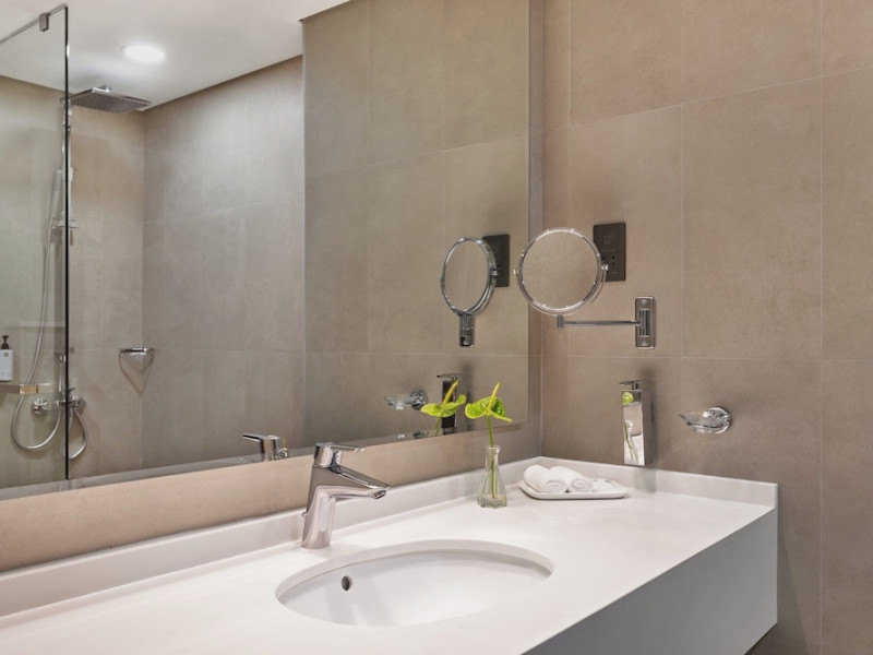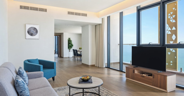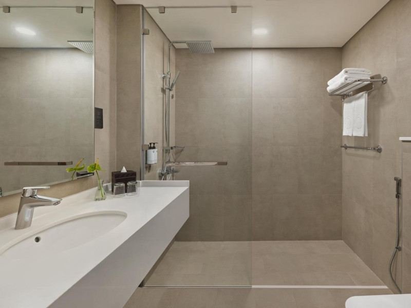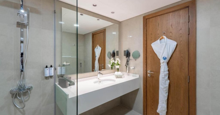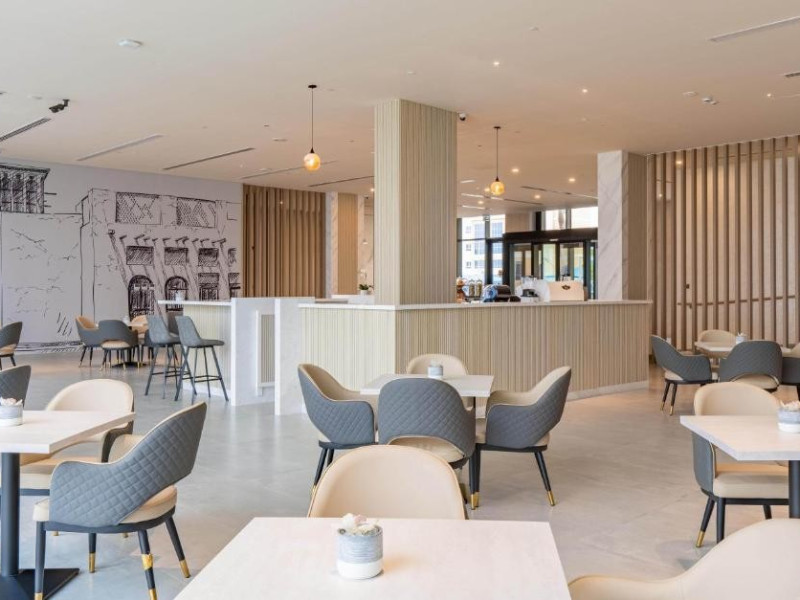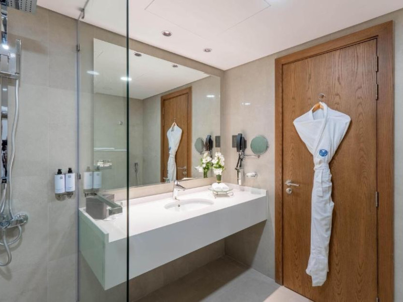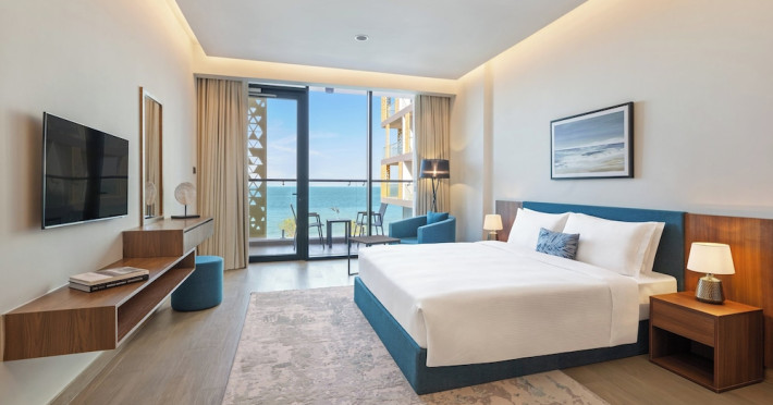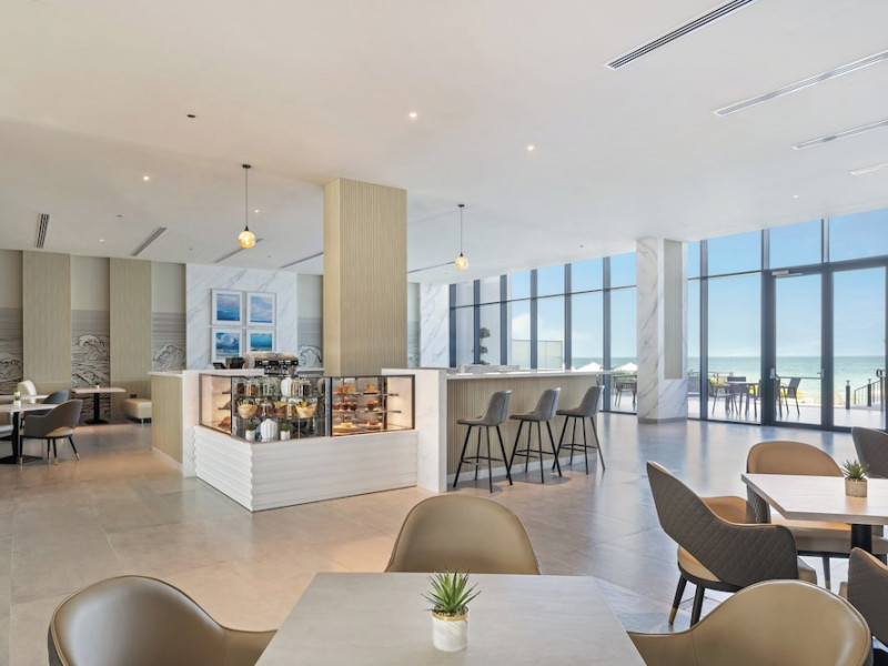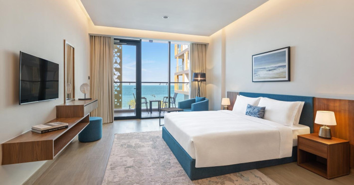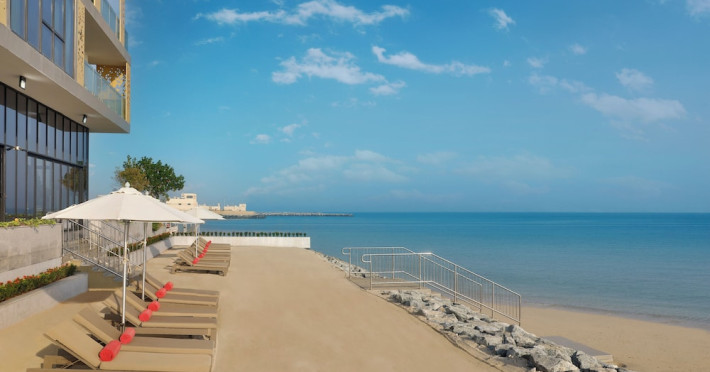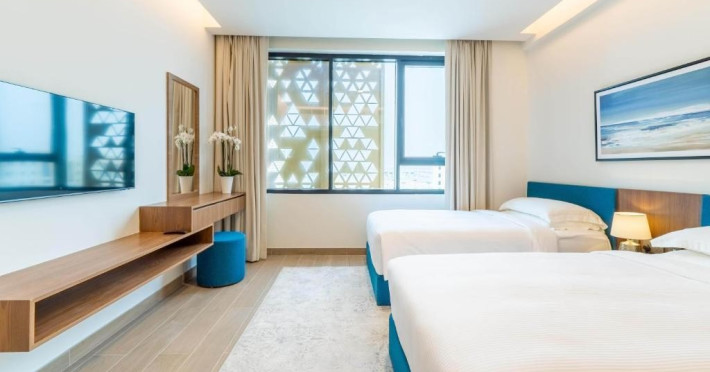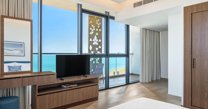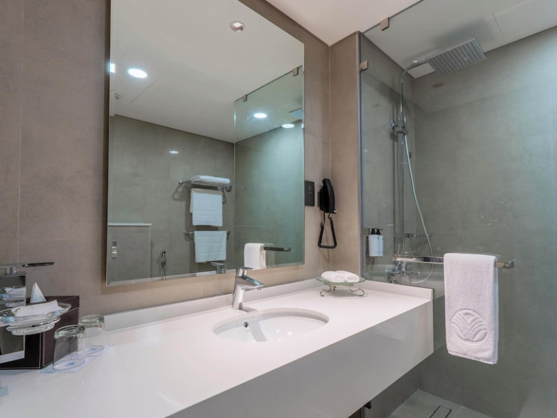 Located in Al Mirfa, Beach Bay Hotel Mirfa offers accommodation with an outdoor swimming pool, garden, terrace, restaurant, bar, and sauna. The hotel features air-conditioned rooms with free WiFi, a desk, kettle, refrigerator, microwave, safety deposit box, flat-screen TV, and a private bathroom with a bidet. Some rooms also offer a balcony. Guests can enjoy a buffet breakfast. The hotel provides room service, concierge service, currency exchange, a 24-hour front desk, multilingual staff, and luggage storage. Additional amenities include a fitness center, coffee shop/cafe, and a poolside bar. Free valet parking is available onsite. The hotel is 200 metres from Al Mirfa Beach and approximately 146.5 - 157 km from Abu Dhabi/Zayed International Airport. The Beach Bay Hotel Mirfa, Edge by Rotana is a hotel.