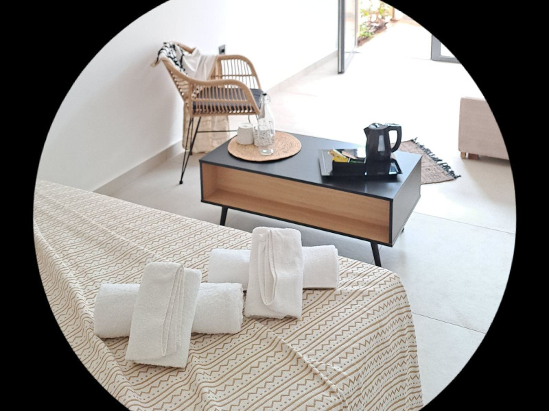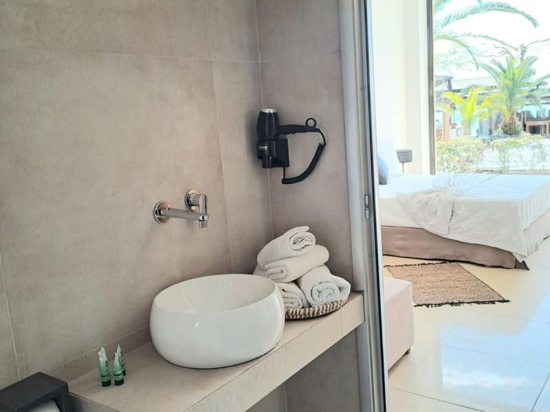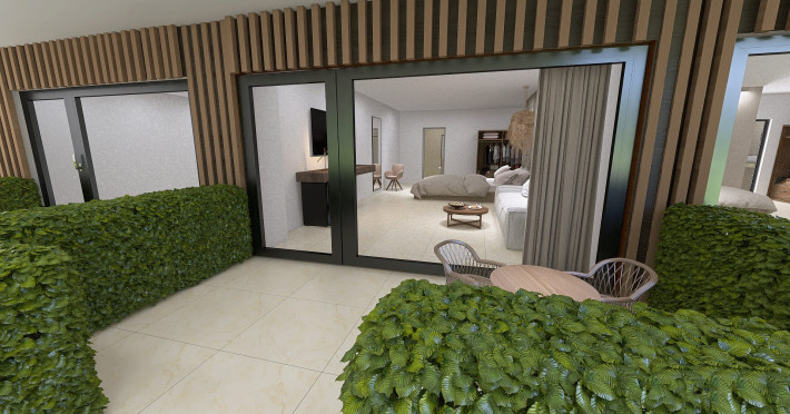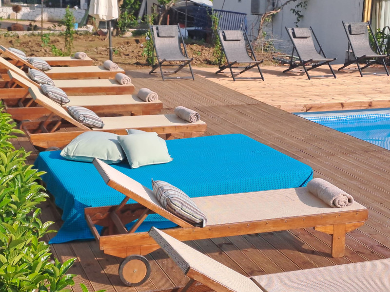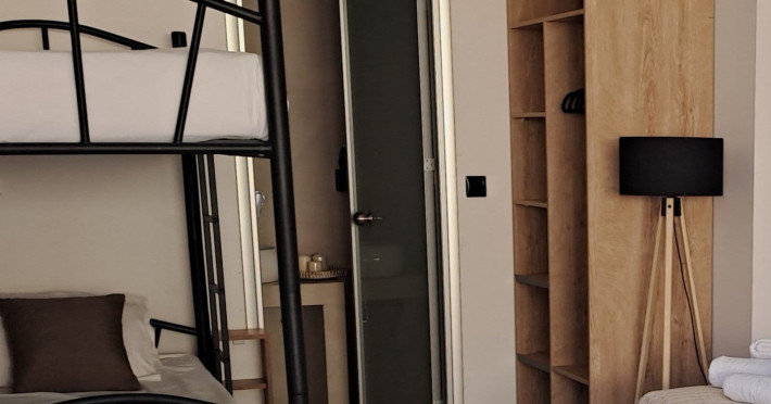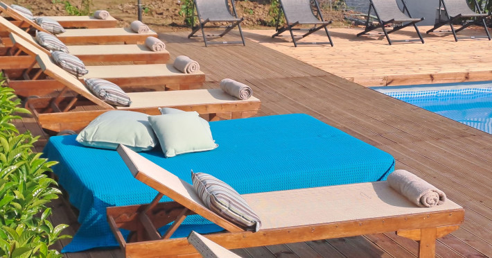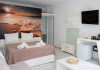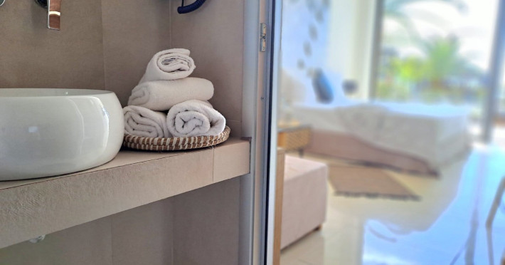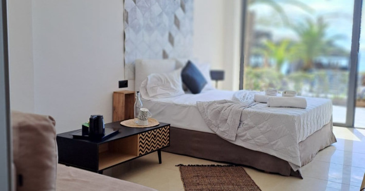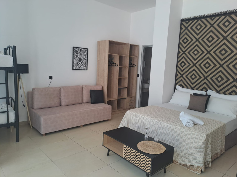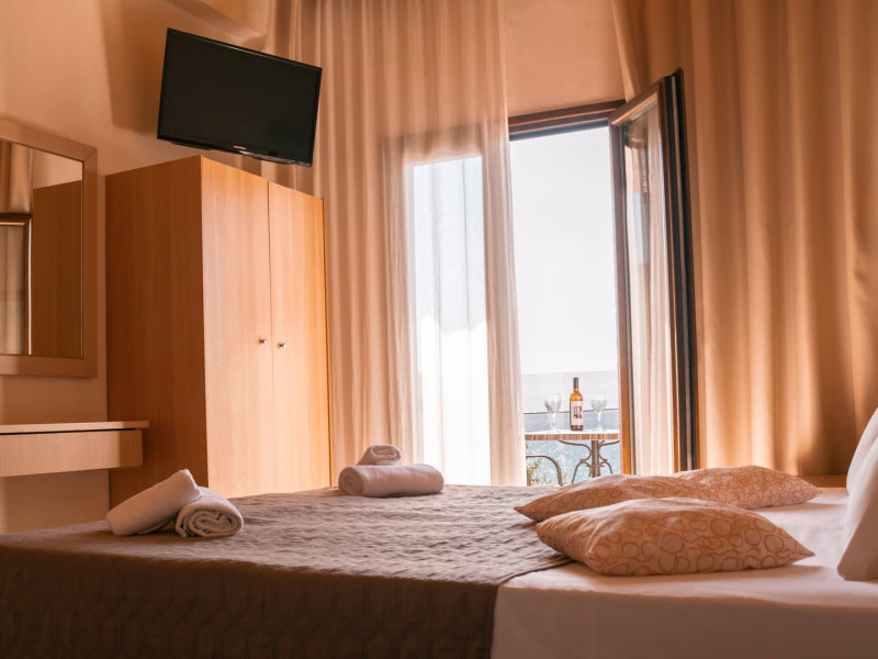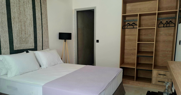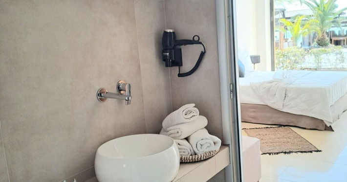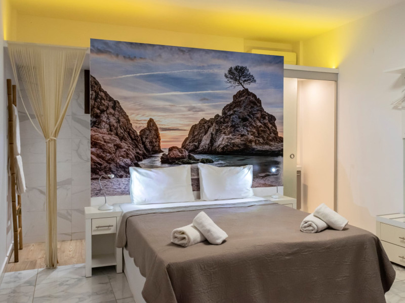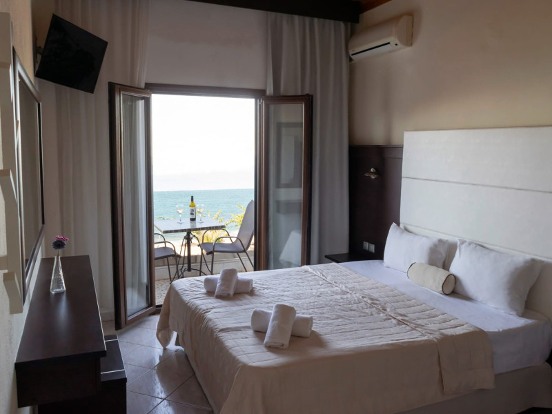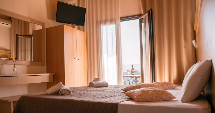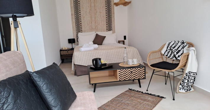 The brand new cabana suites consist of a double bed and a sofa, large enough when opened for 2 children or young adults or 1 bunk bed. Some of them with a wonderful sea view (extra charge upon request, subject to availability and additional charge +10%)