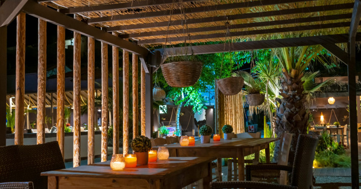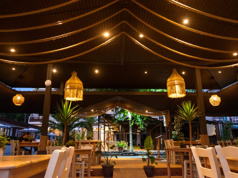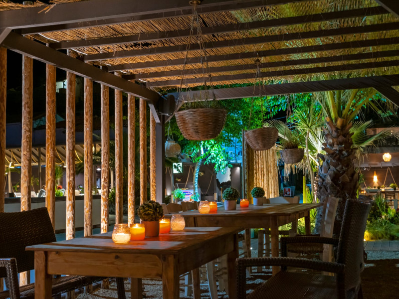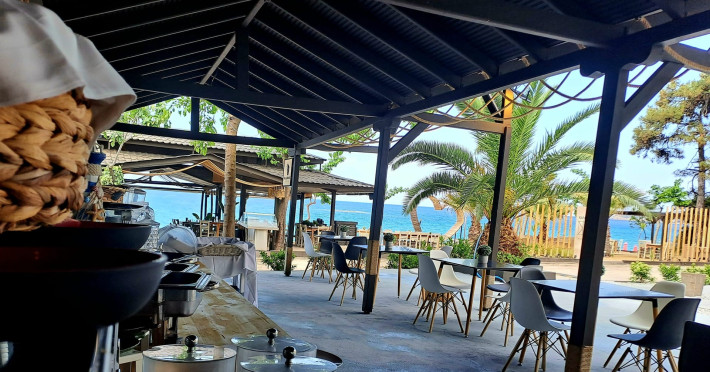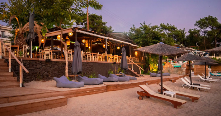 Free umbrellas and sunbeds are provided on the beach when using the bar or restaurant.