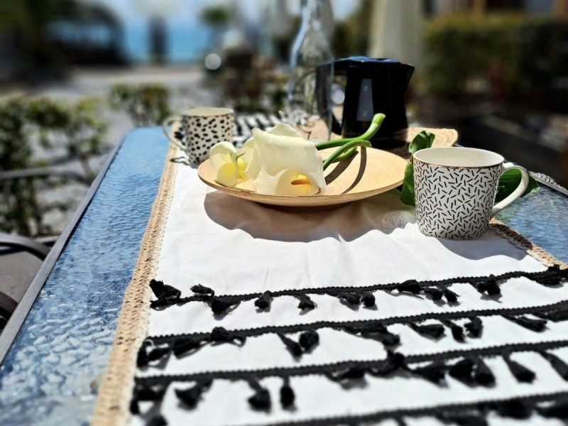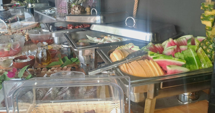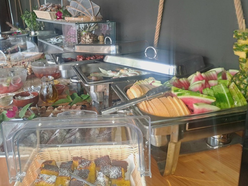 Breakfast is open buffet outside, in addition to being served at our breakfast table on the balconies of junior suites and cabana suites with sea views, during breakfast.