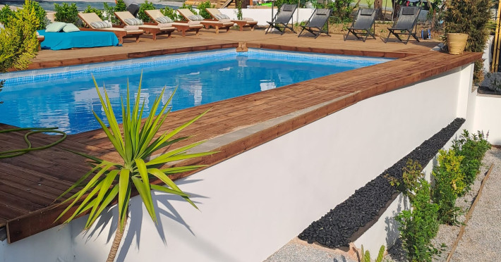 Our new pool is in the back yard and is open from 10am to 8pm. During the siesta, from 15:00 to 17:00, children are not allowed in the pool.