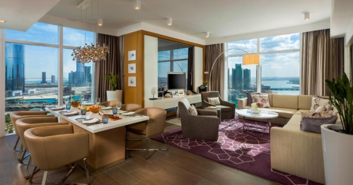 Beach Rotana Residences servește micul dejun tip bufet sau continental. Facilitățile de wellness și spa oferite de proprietate includ saună și hamam. Beach Rotana Residences oferă zonă de plajă privată, loc de joacă pentru copii și grădină.