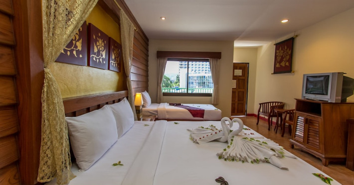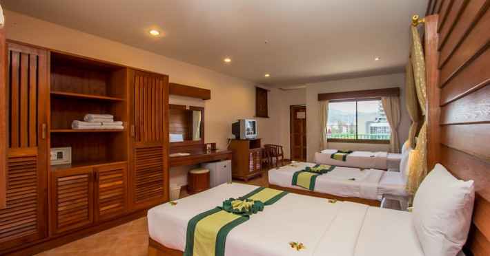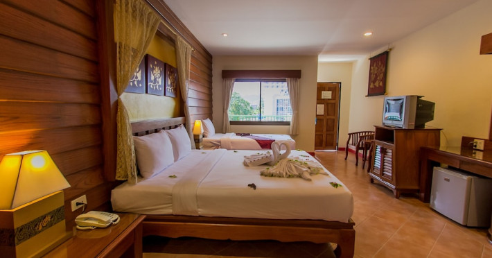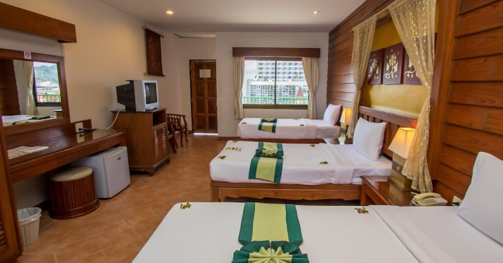 Located in Patong's entertainment and shopping district, Bel Aire Resort Phuket is a short walk from Patong Beach and close to restaurants, tourist attractions, and nightlife. Karon Beach and Phuket Town are easily accessible by car. The resort features air-conditioned rooms with satellite TV, minibars, and private bathrooms. Some upgraded rooms offer kitchenettes. Guests can enjoy two outdoor pools, a restaurant serving local and international cuisine, a casual bar/grill, and a beachfront terrace. Additional amenities include complimentary wireless internet access, concierge services, gift shops/newsstands, and a terrace. Services include a 24-hour front desk, multilingual staff, dry cleaning/laundry services, and room service (during limited hours). Free self-parking is available. The Bel Aire Patong Resort is a Child Friendly, Honeymoon, Leisure, Resort, Tourist hotel. The nightlife/restaurants are within walking distance from the hotel.