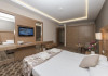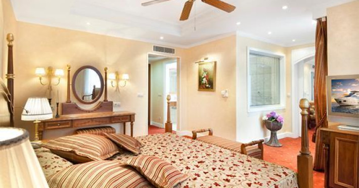 35 km away from the city centre of Antalya directly on the long sandy/pebble beach of Belek, on the edge of a protected area of stone pines and eucalyptus forests surround. Belek is known as a golf paradise with many modern golf courses appropriate to international standards. Also, it is an ideal starting point for the discovery of the antique sights of the region. New, and not far from Belconti Resort Hotel, since December 2004 âReligions Garden completed with a Church, Synagogue and Mosque. Directly in the wide extensive sandy beach of Belek on 98.000 square meters green area invested first-class and environment-friendly resort hotel in the midst of a cultivated and extensive beautiful garden. Our Resort Hotel exists of a fully air-conditioned with tasteful designed lobby and reception, lobby bar with panorama terrace, 4 panoramic elevators, an annex building and 1-3-floor villas, main restaurant with non-smoking area and terrace, 4 a la carte-restaurants with the Ottoman, Italian cuisine , Barbecue and Fish Restaurant, a Nomad Tent with traditional flatbread, Shopping Centre, Hairdresser, Photo Service, Indoor Pool kept at 27-29°C (122m2), Jacuzzi, Turkish Bath, Steam Bath and Sauna, Fitness and Beauty Centre; Game Area, Laundry, Disco, Miniclub, Teenager Club (only in summer season), 2 large Swimming Pools (905 m2 / 724 m2) with 4 water slides, Sunbathing Terrace, Children Pool and Playground, Pool Bar, Snack Beach Bar, Open Air Disco, 10 Tennis courts (Hard Court), Ping-pong Tables, Mini-golf, Basketball and Beach Volleyball, Water Sports, Football Field (100x66 m), also several conference meeting rooms most of which utilise the natural sunlight. Highest Capacity Room which is for 1000 persons. The main building of the hotel and adjacent area equipped with comfortable slopes and ramps.