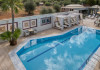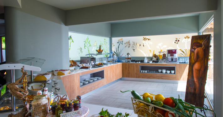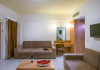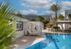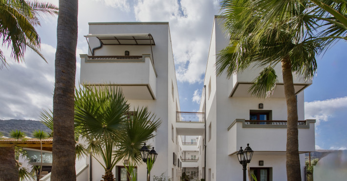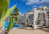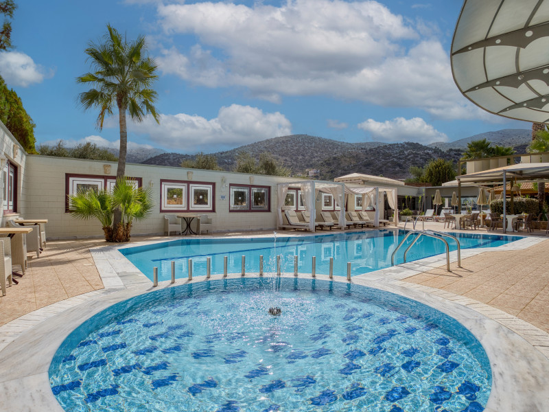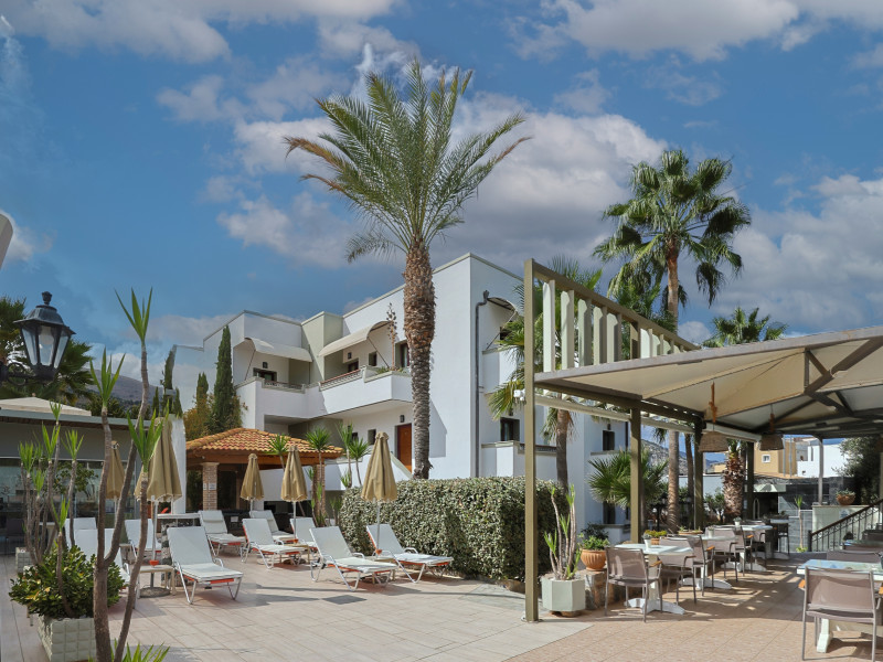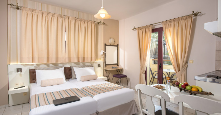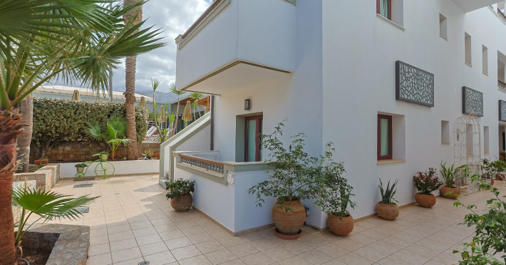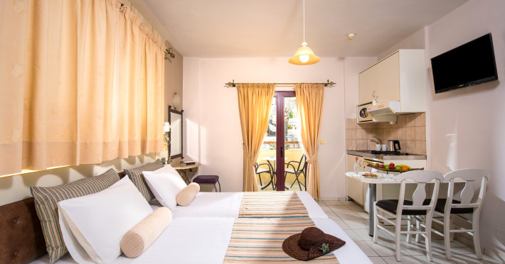 Surrounded by a lush garden and sparkling pool, the hotel offers the perfect blend of relaxation and convenience. The studios and apartments at Bella Elena are a testament to thoughtful design, blending modern and traditional elements in earthy tones. Each room opens to a furnished balcony offering serene views of the pool or the majestic mountains. The well-equipped kitchen or kitchenette in each unit ensures a homely feel, while amenities like a TV, safe, and hairdryer provide the comforts of modern living.