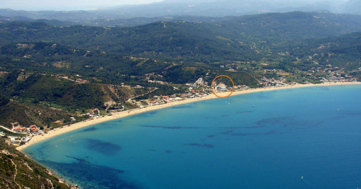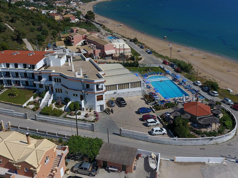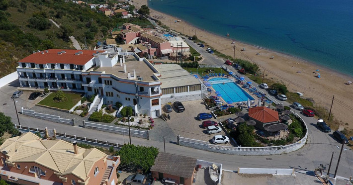 The 54 room, three star hotel is located in front of one of the most beautiful beaches of Corfu island, Agios Georgios Pagi, 35 km North West of the capital city, the airport and the portof Corfu.The view from the hotel is spectacular. You can enjoy the long sandy beach and play with the sun and the waves of Ionian Sea. A truly magical location for unforgettable holidays.