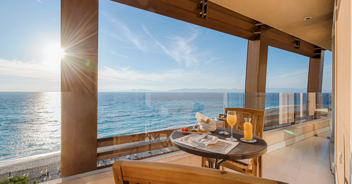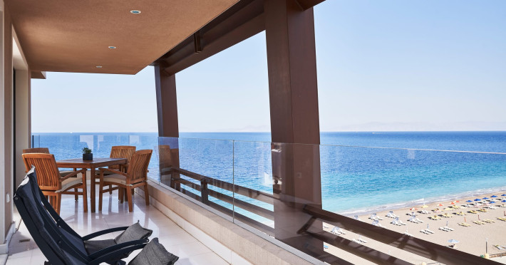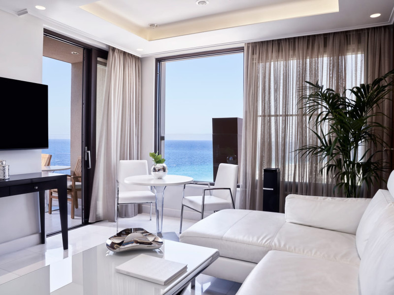 Bellevue | On The Beach Suites City Rhodes recently renovated combines luxury, comfort and the element of privacy. Being a Beach-Front-Hotel Bellevue’s design focuses on highlighting the stunning sea views at the best possible way.
