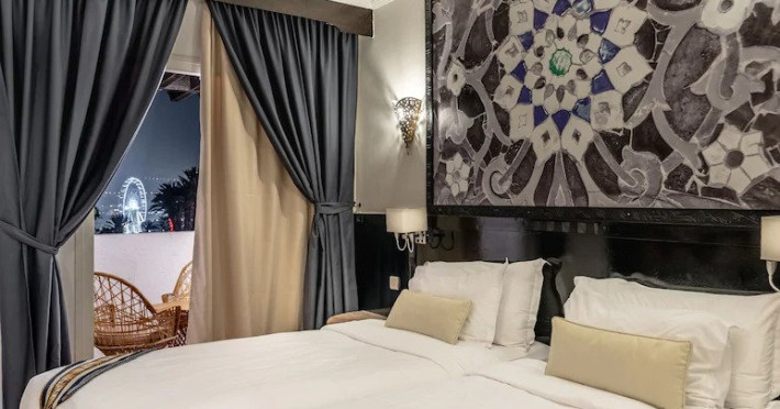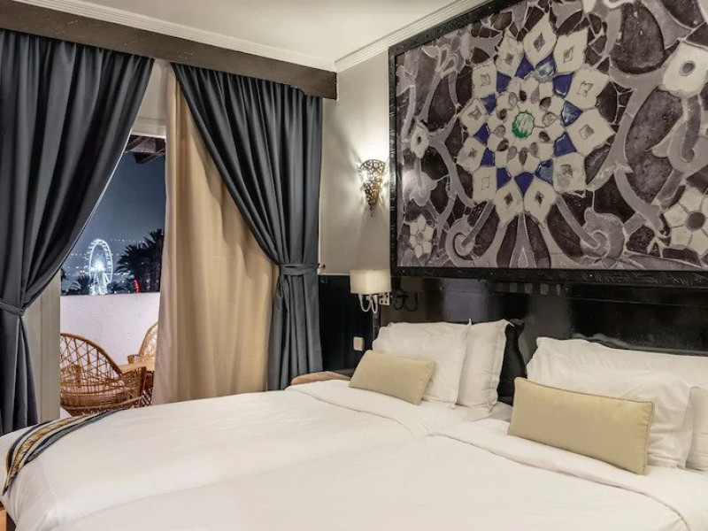 Toate camerele sunt decorate in stil marocan si dispun de balcon sau terasa. Toate camerele dispun de TV prin satelit, minibar, aparat pentru prepararea ceaiului/cafelei, aer conditionat, seif, canapea, birou, telefon, baie cu cada sau dus si articole de toaleta gratuite, uscator de par, Wi-Fi.