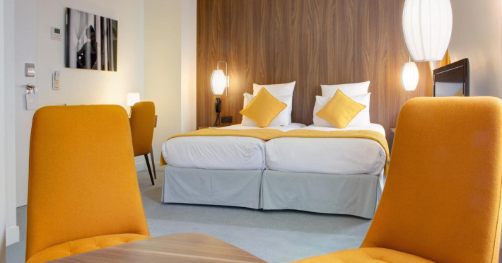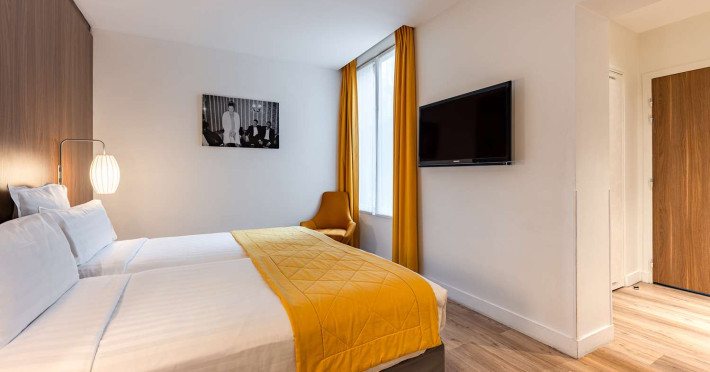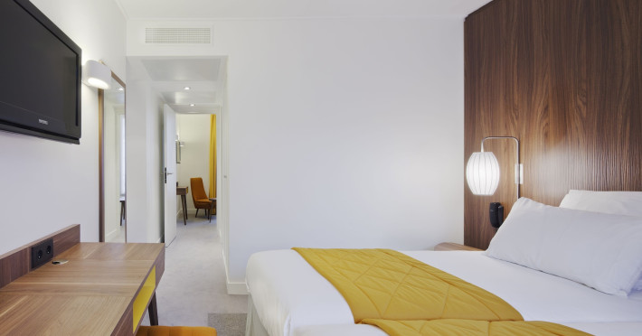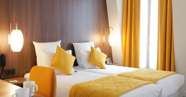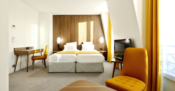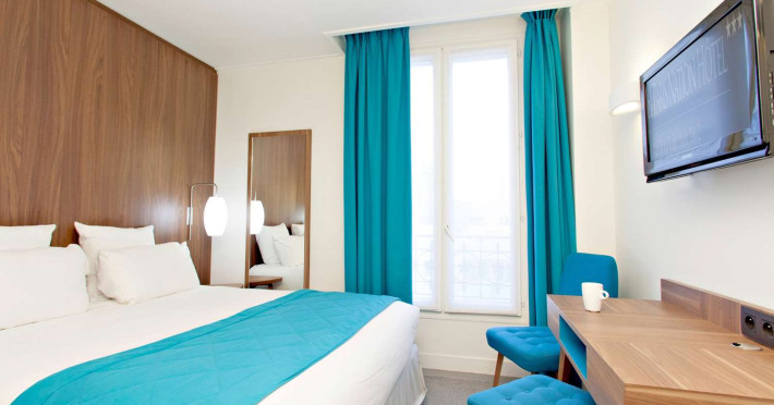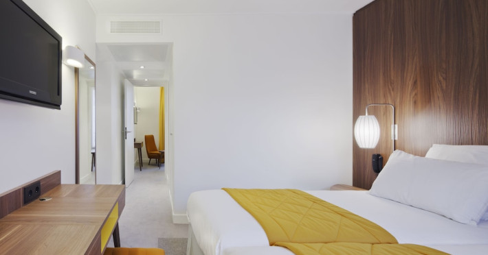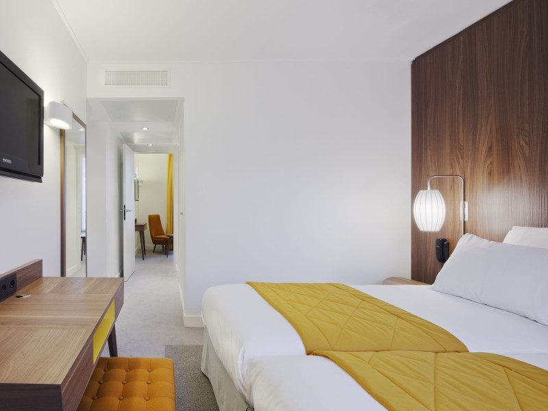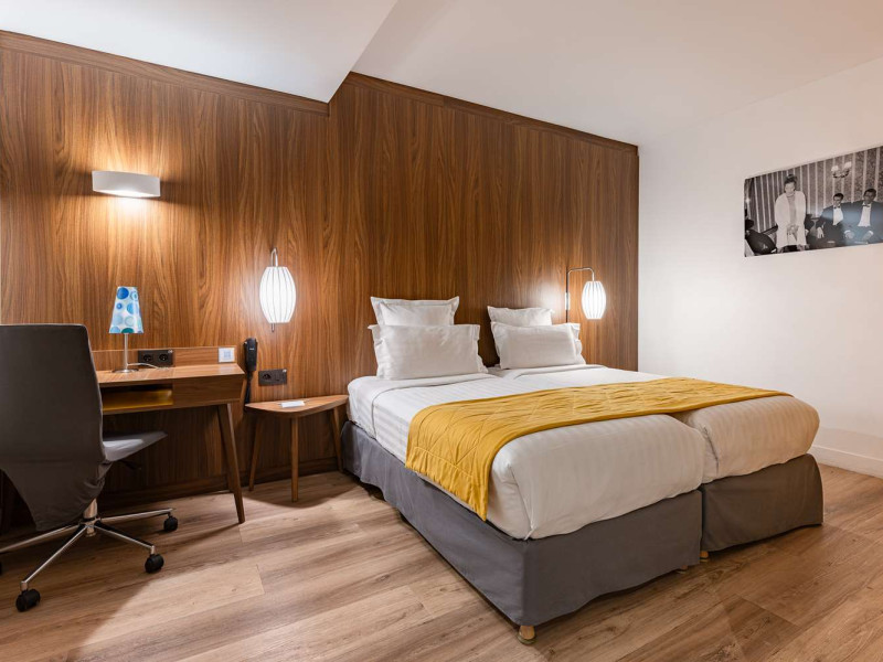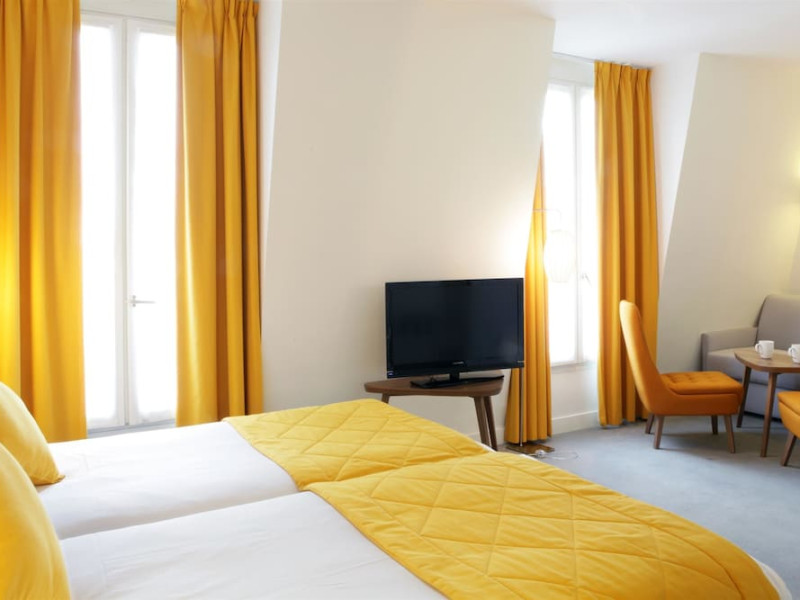 The Best Western Plus 61 Paris Nation Hotel, with a retro-chic 1960s design, is located near Place de la Nation, Gare de Lyon, and the Bastille neighborhood. This eco-certified hotel offers 48 soundproofed, air-conditioned guestrooms with free WiFi, satellite TV, a phone, a desk, and a private bathroom with a rainfall showerhead and complimentary toiletries. Conveniences include a laptop-compatible safe. Some rooms offer courtyard views. A buffet breakfast is available daily in the breakfast room or via room service, with an express breakfast option also available. The hotel features a bar/lounge, coffee shop/cafe, concierge services, a computer station, express check-out, complimentary newspapers in the lobby, and luggage storage. The 24-hour reception offers a ticket reservation service. Porte de Vincennes Metro Station is nearby, providing direct access to the Louvre Museum and the Champs-Elysées. The RER offers direct transport to Disneyland and La Défense. Paris Orly Airport (ORY) is 16.7 km away, and Paris Charles de Gaulle Airport (CDG) is 29.7 km away; the hotel prefers Paris Charles de Gaulle Airport (CDG). Nearby attractions include Bois de Vincennes and Père Lachaise Cemetery. The Best Western Plus 61 Paris Nation is a Tourist hotel. The nightlife/restaurants are easily accessible by taxi or bus from the hotel.