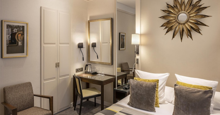 Located in the heart of Paris, the Best Western Plus Hotel Sydney Opera is within walking distance of the Opera house, Madeleine Church, Concorde Place, Hausmann Department Stores, and the luxurious shops of Faubourg Saint Honore. The hotel is housed in a Napoleon III-style building and offers complimentary Wi-Fi access throughout the property. All rooms have been recently renovated and feature minibars, flat-screen televisions with satellite programming, phones, safes, desks, and private bathrooms with complimentary toiletries and hair dryers. Guests can enjoy a drink at the bar/lounge, and a buffet breakfast is available daily for a fee. The hotel provides convenient amenities such as a 24-hour front desk, multilingual staff, concierge services, and luggage storage. Public transportation is easily accessible, providing direct access to La Defense, Paris Expo Porte de Versailles, Gare du Nord, and Disneyland® Paris. The Best Western Plus Hotel Sydney Opera is a Tourist hotel. Located in 8th Arrondissement area. The nightlife/restaurants are located in the hotel.