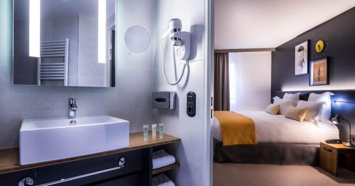 Located in Bois-Colombes, the Best Western Plus Suitcase Paris La Defense offers air-conditioned rooms and suites with a design inspired by travel. Each room features free Wi-Fi, an LED TV, a safe, and a bathroom with a shower or bathtub. Some rooms also have kitchenettes with a stovetop and microwave. The hotel is near the Bois-Colombes train station, providing easy access to La Défense and Paris Saint-Lazare. A buffet breakfast is available, and the hotel has a bar. Amenities include a 24-hour reception, concierge service, luggage storage, a business center, complimentary newspapers in the lobby, and dry cleaning/laundry services. On-site covered parking is available for a fee. The Best Western Plus Suitcase Paris La Defense is a hotel.