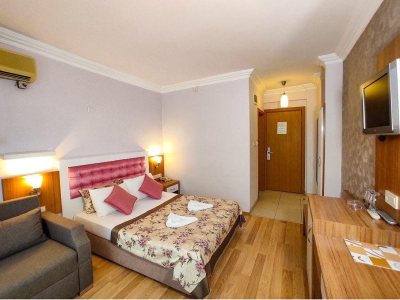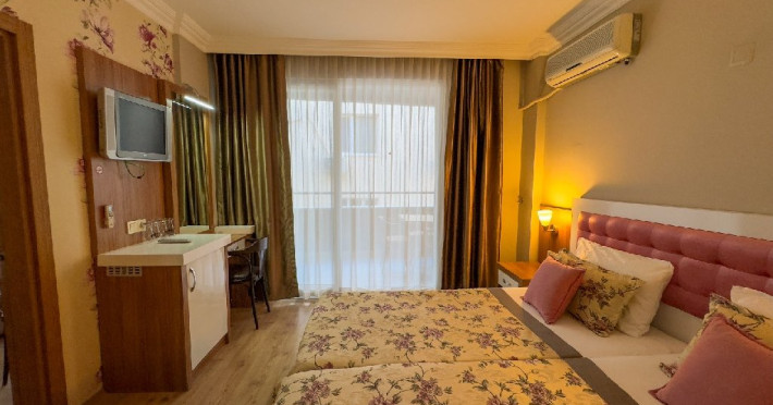 Localizare: Bilkay Hotel se afla pe malul marii in Alanya. Facilitati hotel: Hotelul pune la dispozitia clientilor: piscina in aer liber, Wi-Fi, acces imediat la plaja, parcare, restaurant, bar, room service, cocktailuri ( cost suplimentar), spalatorie (cost suplimentar), serviciu a la carte (cost suplimentar), sporturi nautice (cost suplimentar), sezlong (cost suplimentar). Dotari camere: Camerele sunt dotate cu aer conditionat, TV, baie privata, uscator de par, minibar, telefon. Nota informativa: Pentru anumite facilitati din hotel sau din camera, hotelierul poate solicita taxe suplimentare. In momentul sosirii la hotel solicitati receptionerului sa va informeze cu exactitate asupra lor. Website: https://www.bilkayhotel.com.tr/