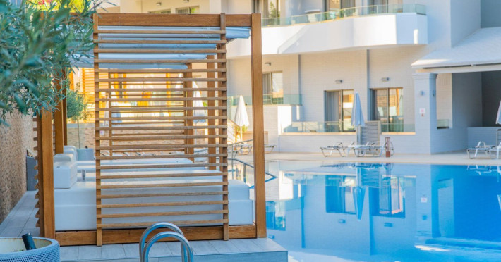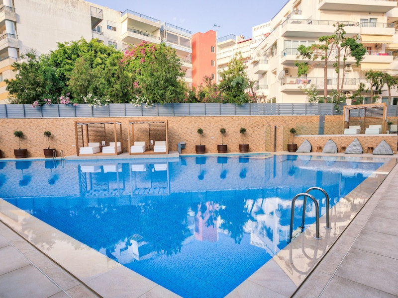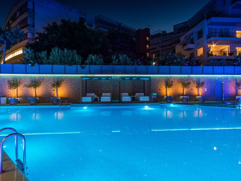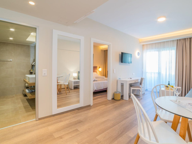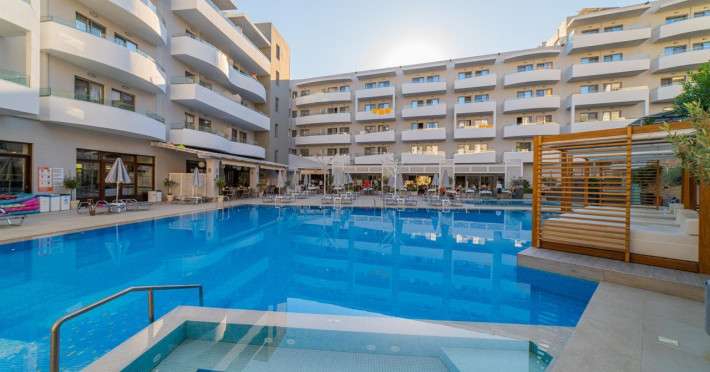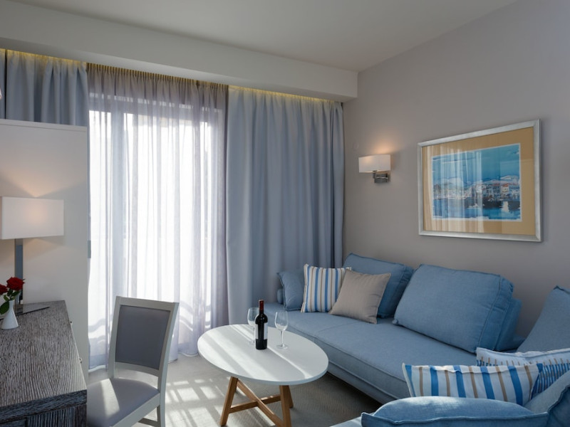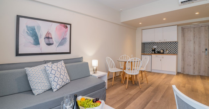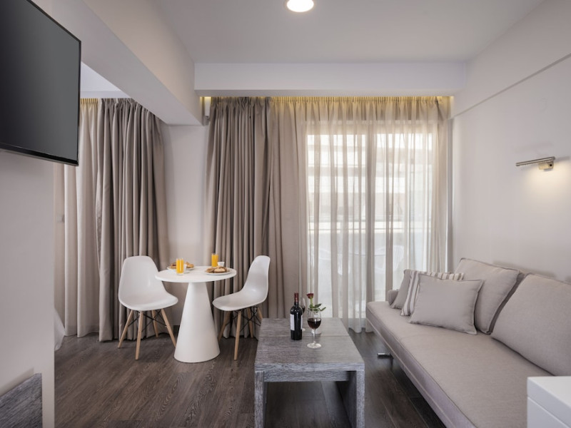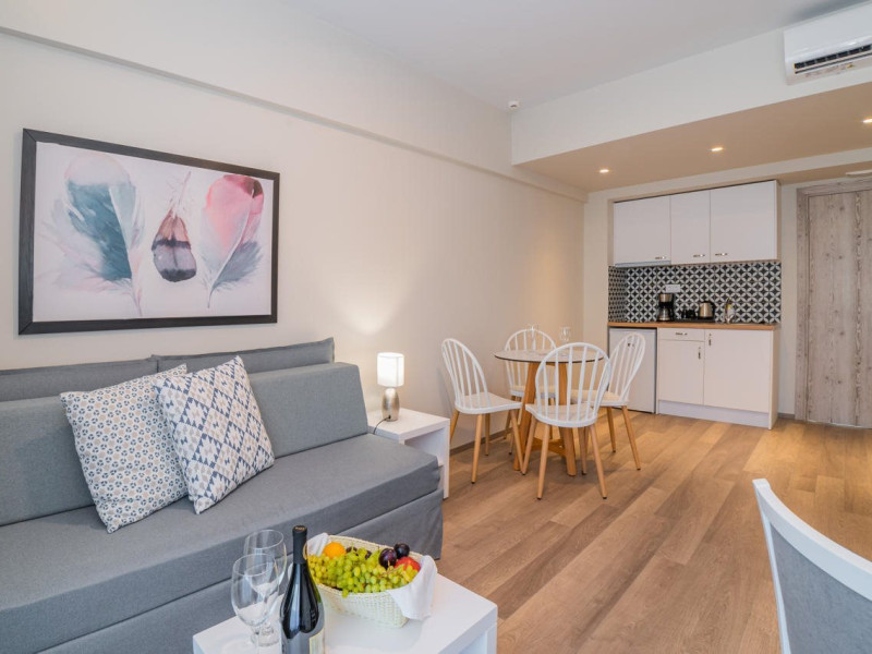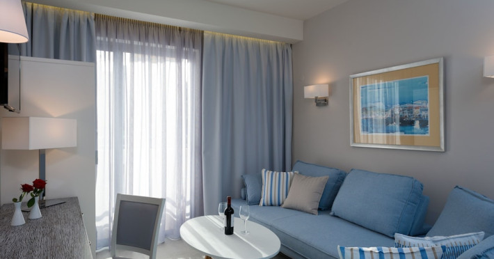 Facilities and services include reception, elevators, late check-out (upon availability with extra charge), lobby, lounge, bar, restaurant, satellite TV lounge, library, Wi-Fi, internet corner, luggage room, swimming pool, conference room (up to 120 seats), audio-visual equipment (extra charge), tour operator room, Sauna , jacuzzi, hammam (extra charge), massage (extra charge), aromatherapy (extra charge) and gym. Rooms feature individual air-conditioning/heating, Wi-Fi, telephone (extra charge), safety deposit box (extra charge), LCD TV (with satellite channels), dining table and chairs, kitchenette (fridge, microwave oven, toaster, coffee maker, kettle), hairdryer, room service, towel change (daily), linen change (every 3rd day) and laundry service (extra charge).* SUPERIOR ROOMS & DELUXE ROOMS PROVIDE WITH: 1 BOTTLE WINE, 1 BOTTLE WATER, FRUIT UPON ARRIVAL. BATHROBES & SLIPPERS, TEA & COFFEE (daily refill)**Ful Board: based on Lunch and Dinner. DRINKS INCLUDED WITH LUNCH & DINNER: DRAUGHT BEER, RED AND WHITE HOUSE WINE, SOFT DRINKS, WATER. DRINKS AT THE BAR 10.00-23.00: all alcoholic drinks, coffees, soft drinks. 10.00-12.00 cake & snacks / 15.00-16.00 cake, snacks & ice creamPlease note that some of the above facilities may be closed due to weather/ seasonal conditions.Address: Albert Schweitzer 13, 74100, Rethymnon, Crete, Greece.
