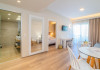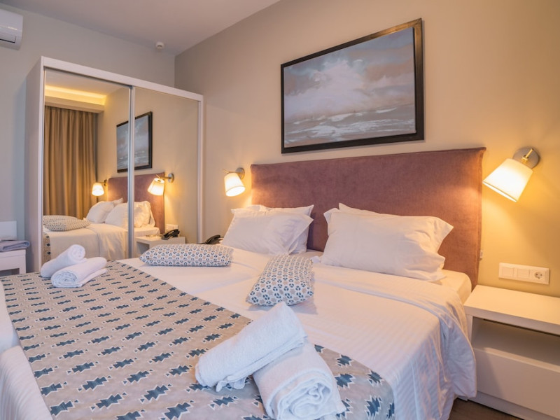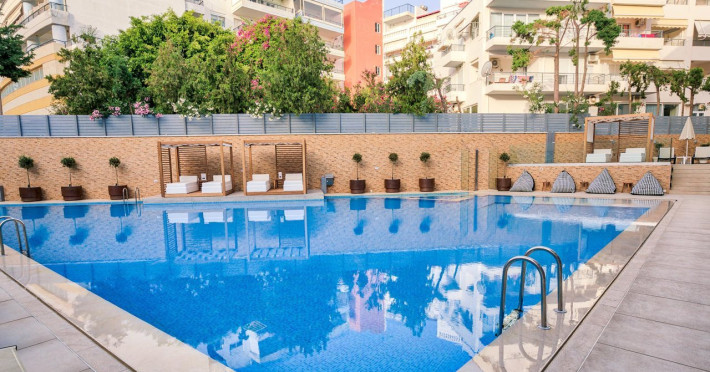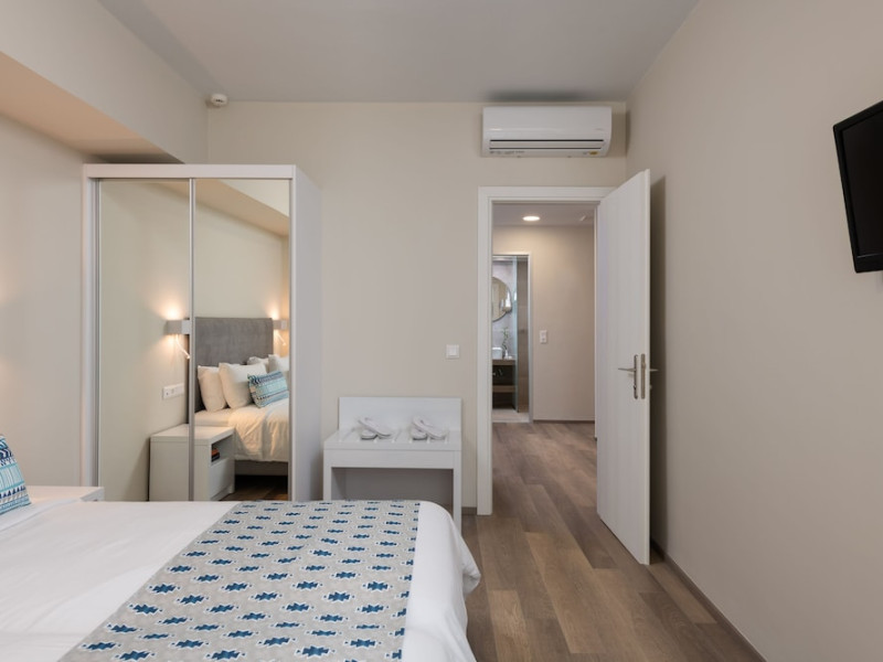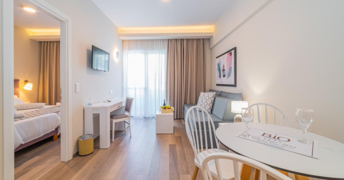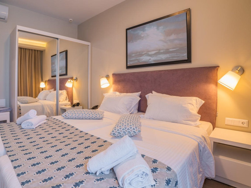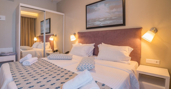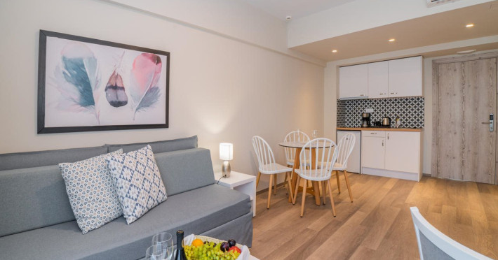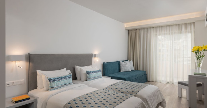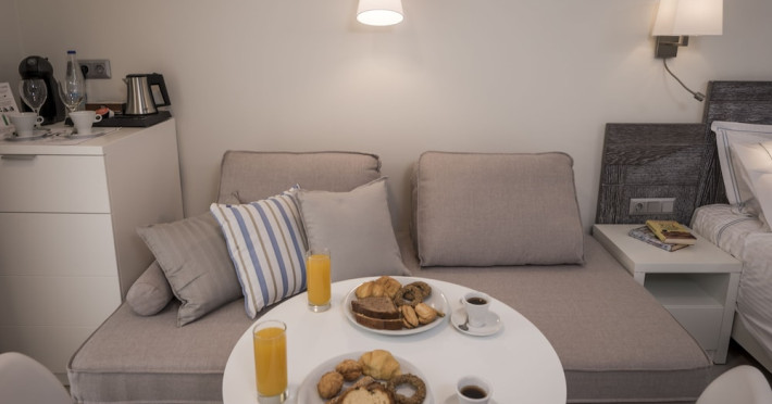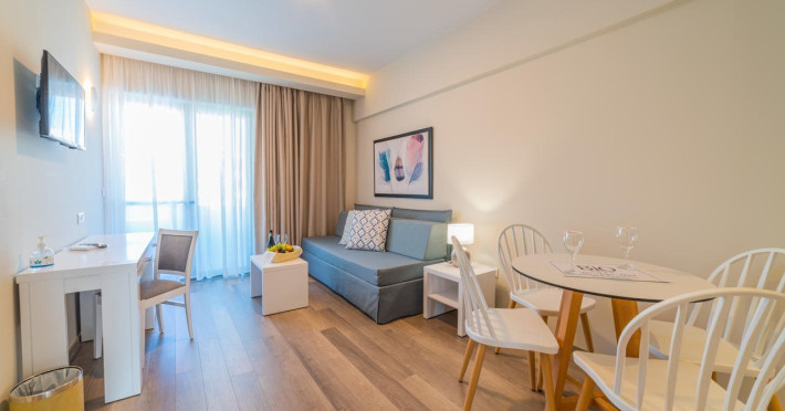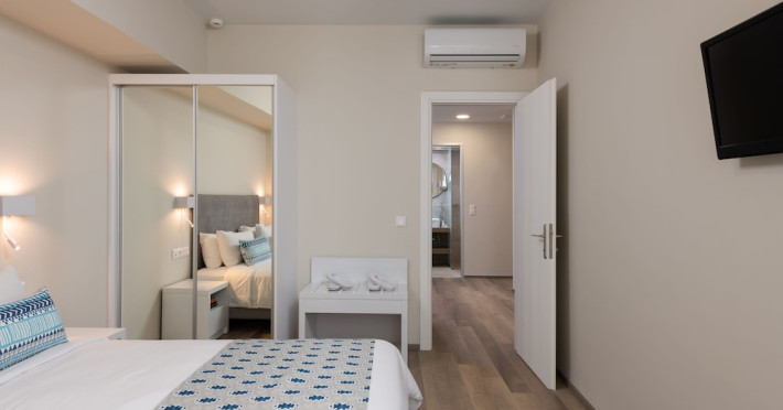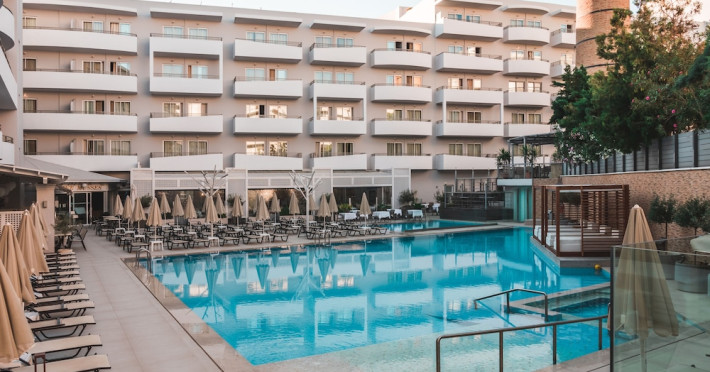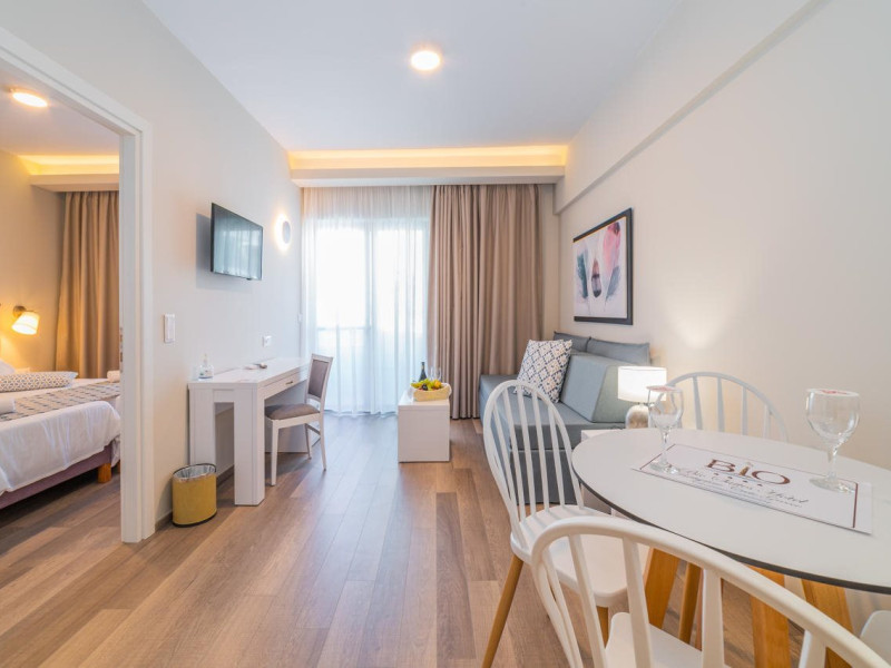 Facilities and services include reception, elevators, late check-out (upon availability with extra charge), lobby, lounge, bar, restaurant, satellite TV lounge, library, Wi-Fi, internet corner, luggage room, swimming pool, conference room (up to 120 seats), audio-visual equipment (extra charge), tour operator room, Sauna , jacuzzi, hammam (extra charge), massage (extra charge), aromatherapy (extra charge) and gym. Rooms feature individual air-conditioning/heating, Wi-Fi, telephone (extra charge), safety deposit box (extra charge), LCD TV (with satellite channels), dining table and chairs, kitchenette (fridge, microwave oven, toaster, coffee maker, kettle), hairdryer, room service, towel change (daily), linen change (every 3rd day) and laundry service (extra charge).* SUPERIOR ROOMS & DELUXE ROOMS PROVIDE WITH: 1 BOTTLE WINE, 1 BOTTLE WATER, FRUIT UPON ARRIVAL. BATHROBES & SLIPPERS, TEA & COFFEE (daily refill)**Ful Board: based on Lunch and Dinner. DRINKS INCLUDED WITH LUNCH & DINNER: DRAUGHT BEER, RED AND WHITE HOUSE WINE, SOFT DRINKS, WATER. DRINKS AT THE BAR 10.00-23.00: all alcoholic drinks, coffees, soft drinks. 10.00-12.00 cake & snacks / 15.00-16.00 cake, snacks & ice creamPlease note that some of the above facilities may be closed due to weather/ seasonal conditions.Address: Albert Schweitzer 13, 74100, Rethymnon, Crete, Greece.