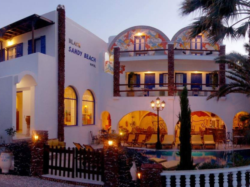 Only 150 m from Perissa Beach, the Black Sandy Beach features a swimming pool with sun-lounger terrace and hot tub. Leisure and sports facilities also include a gym and sauna room.