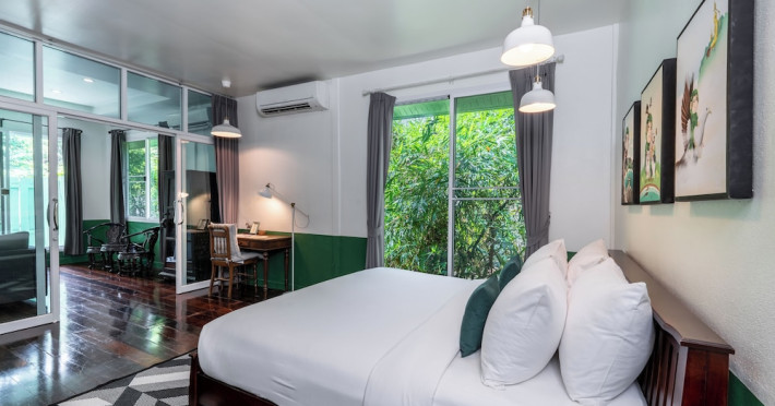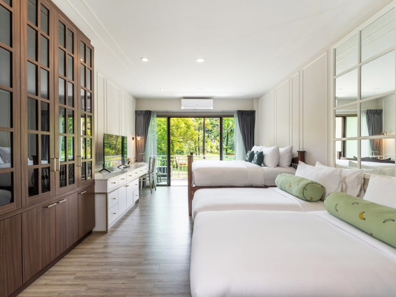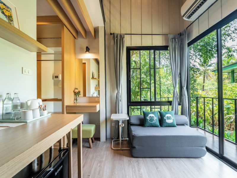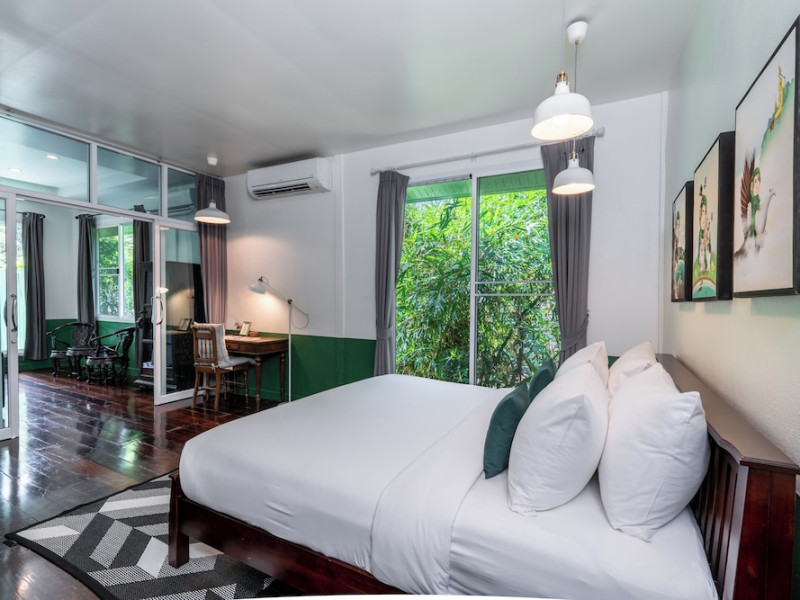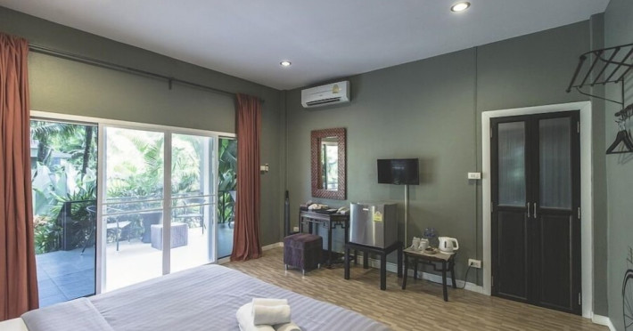 Located in Krabi, Krabi Pooltara Resort offers a comfortable stay with a high standard of service and various amenities. Guests can enjoy complimentary Wi-Fi, daily housekeeping, and concierge services. The resort features an outdoor pool, a full-service spa offering massages, and recreational amenities like bicycles for rent. Dining options include a restaurant, coffee shop/cafe, and a bar/lounge, with 24-hour room service available. A complimentary continental breakfast and a daily complimentary reception are provided. The air-conditioned rooms feature refrigerators, LCD televisions with cable programming, private bathrooms with complimentary toiletries, and private patios. Airport shuttle service is complimentary and available 24 hours. The resort also offers luggage storage, laundry facilities, and complimentary parking. Guests can enjoy on-site BBQ facilities, water sports facilities, and can arrange trip excursions. Free use of bicycles and motorbikes is available. The resort is pet friendly and features a shared lounge, barbecue, and sun terrace. The Blu Monkey Pooltara Krabi is a hotel.