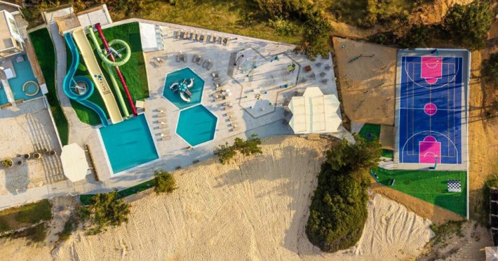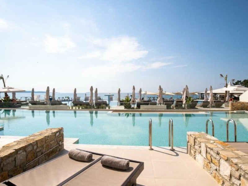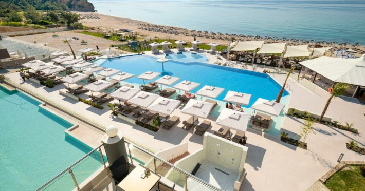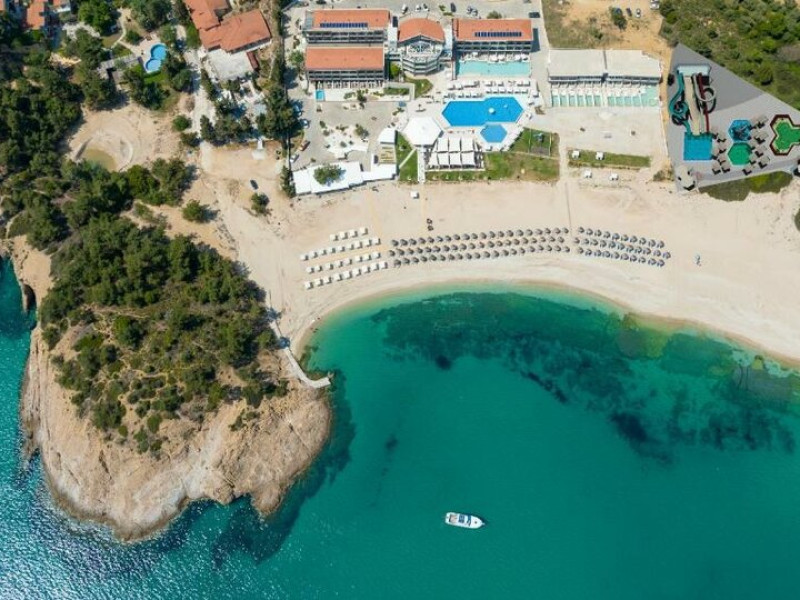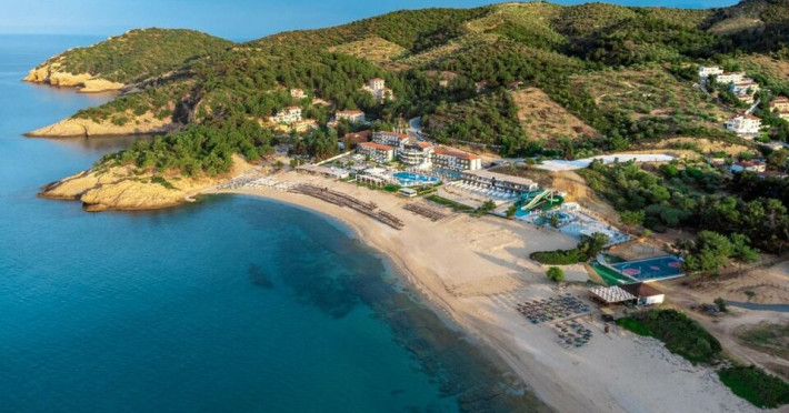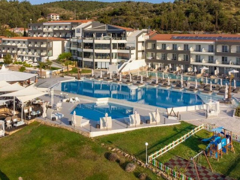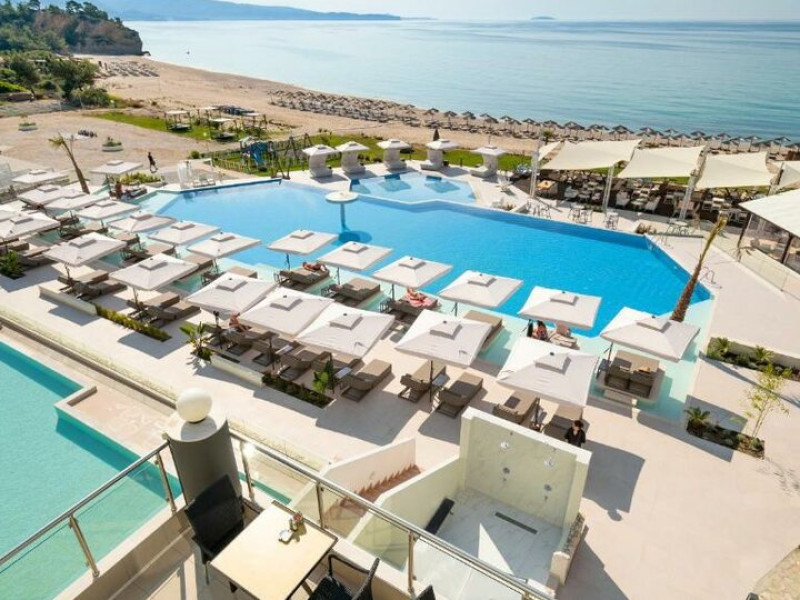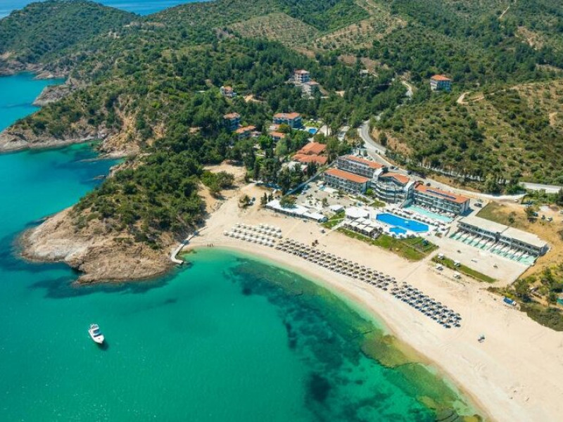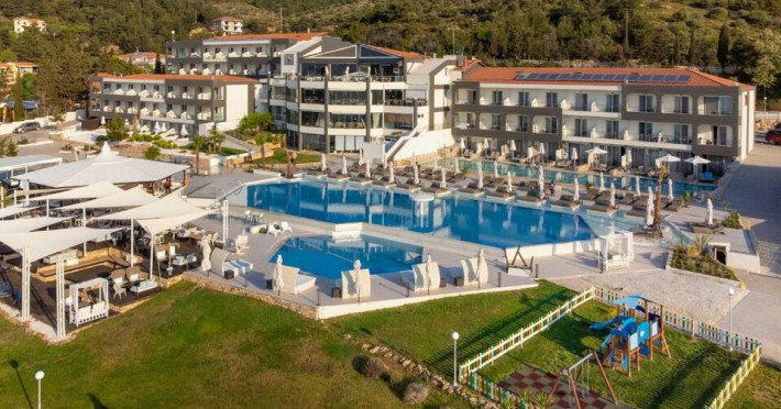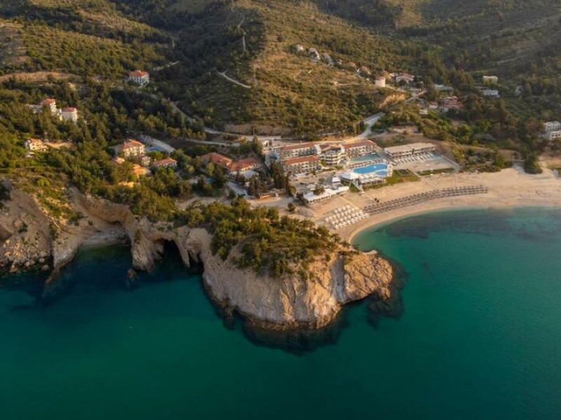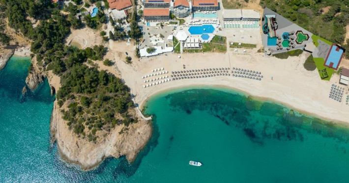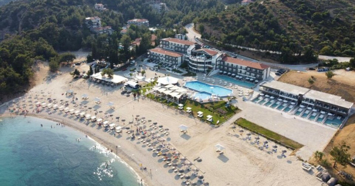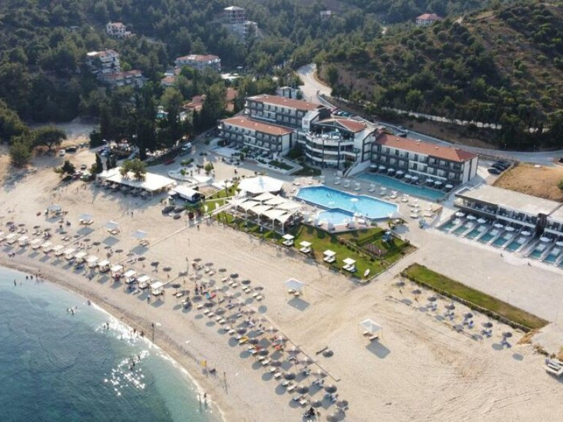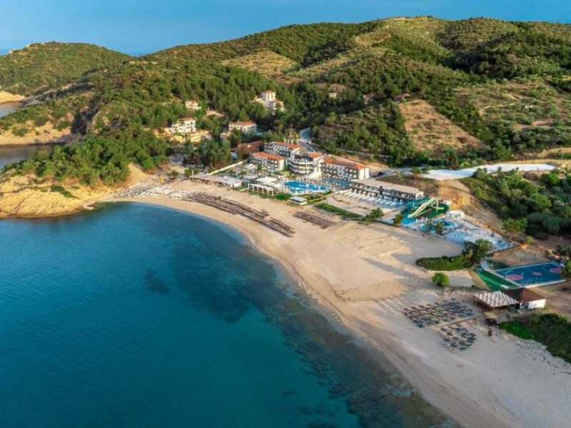 Situated in the breathtaking region of Thassos lies the prestigious Blue Dream Palace hotel, an epitome of sophistication and charm. Its prime location on the beautifull Tripiti beach in Limenaria sets the stage for an unparalleled experience. Renowned for its impeccable services and a plethora of amenities, the hotel boasts an exceptional blend of discreet luxury and genuine quality.Offering a wealth of amenities, this resort comprises two outdoor pools and a heated indoor pool complemented by a hot tub. A dedicated spa center awaits guests, while the hotel provides complimentary sun loungers, umbrellas, and pool towels for ultimate relaxation. Beyond the pools, the Palace presents a fitness center, sauna, and hammam for rejuvenation. Entertainment options abound with a playroom, childrens playground, water park and captivating Greek-themed nights. Indulge in diverse massage treatments at the luxurious spa. Savor culinary delights at the main buffet restaurant or the charming seaside tavern. Additionally, two bars, including a poolside bar, cater to your refreshment needs. The Blue Dream Palace epitomizes a haven where leisure and luxury converge for an unforgettable retreat.